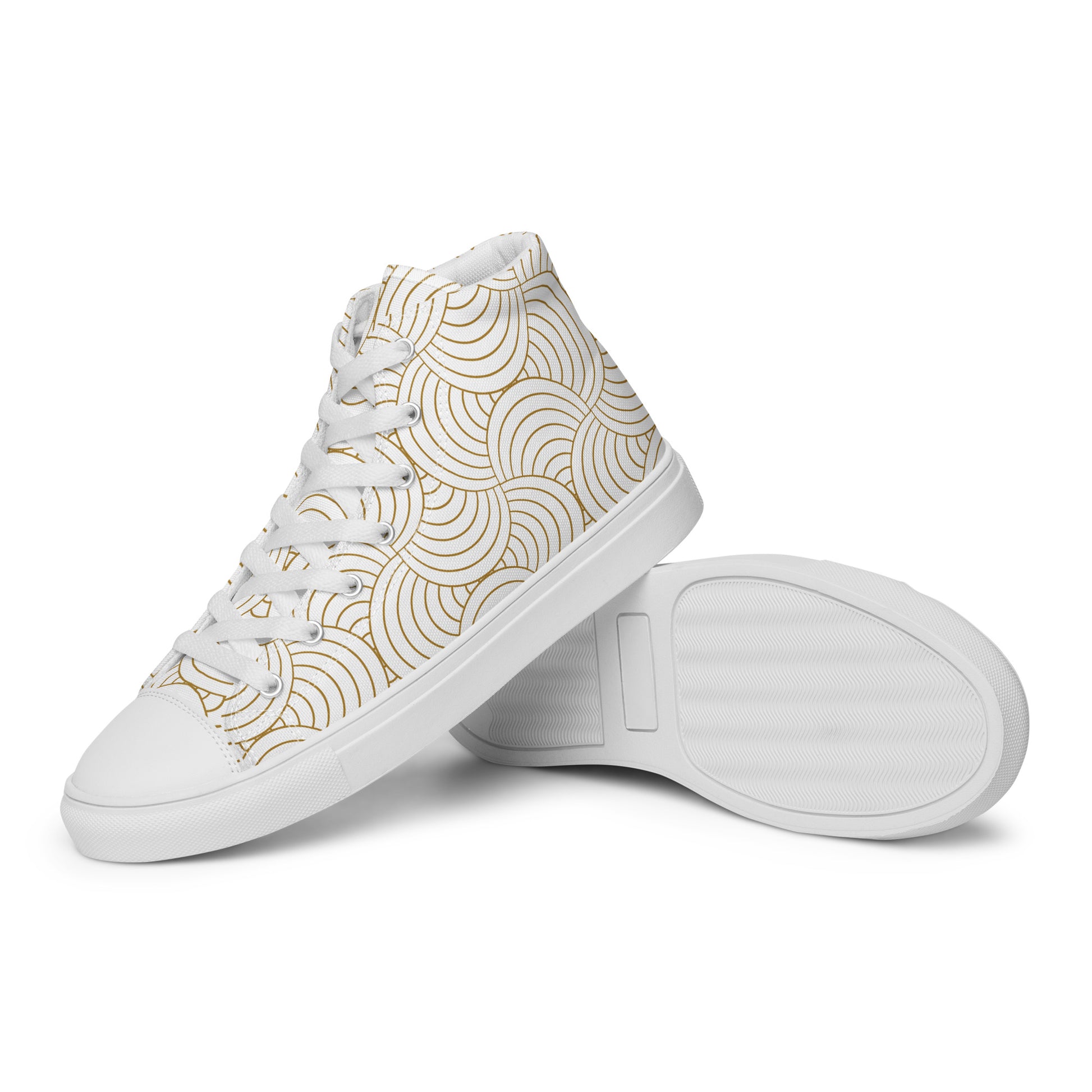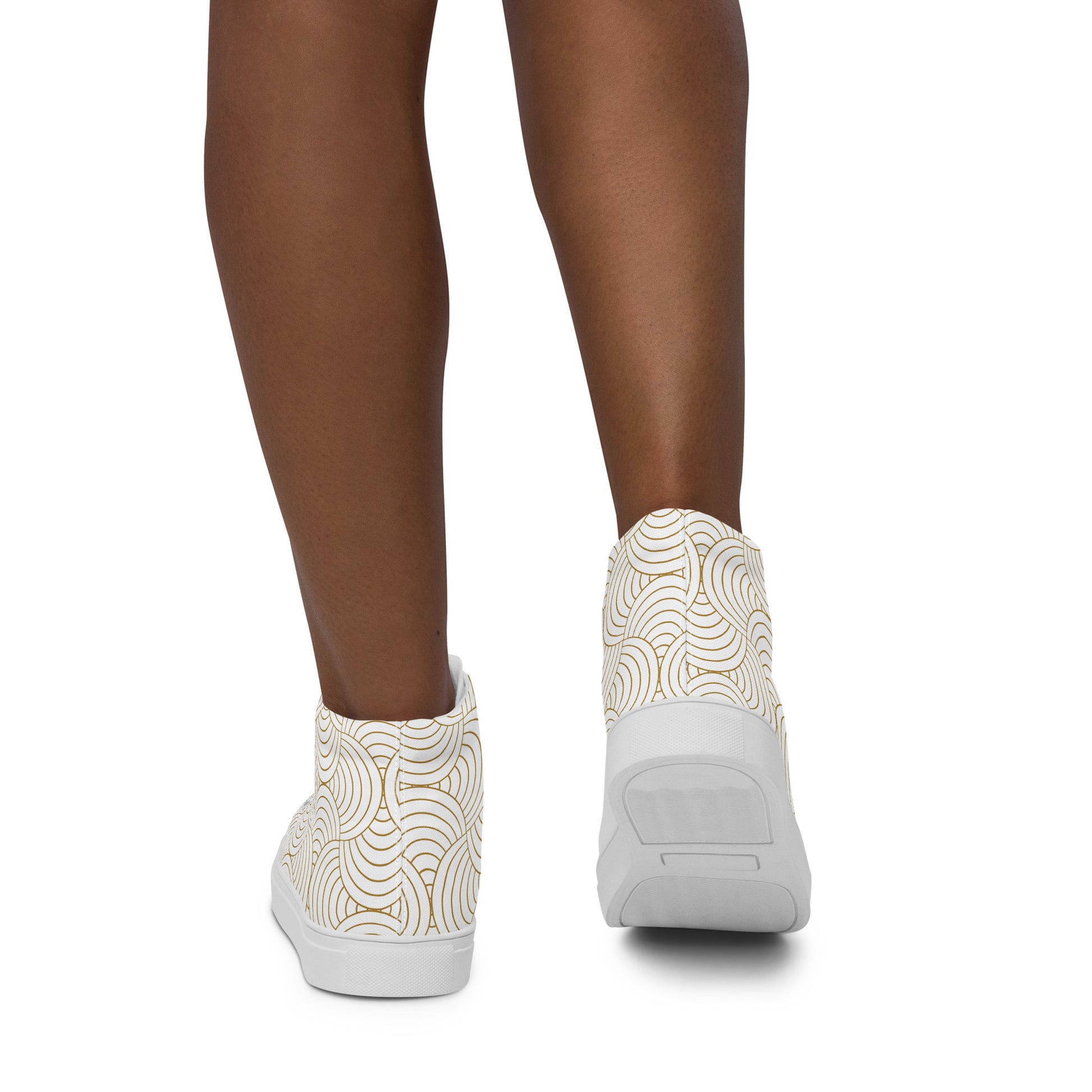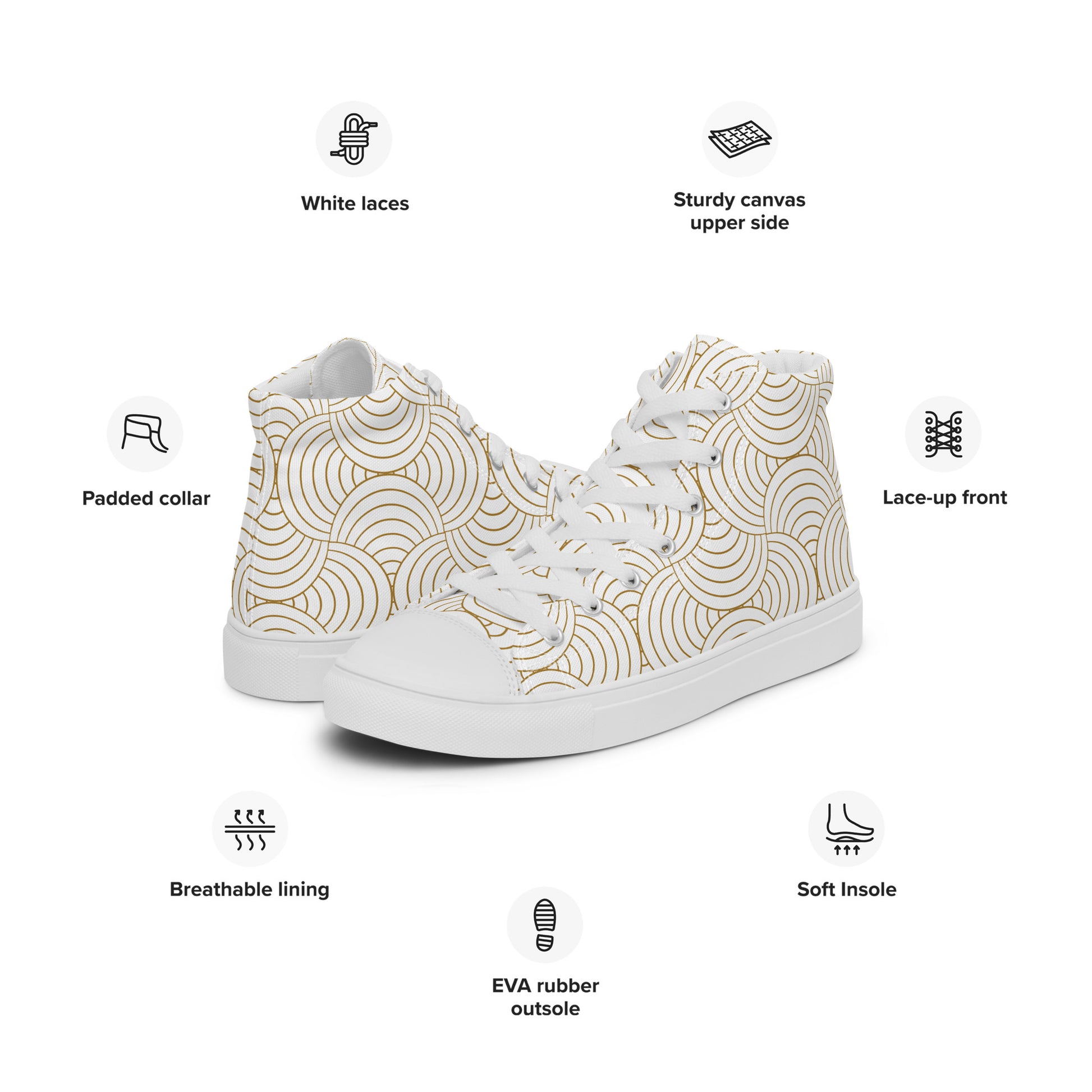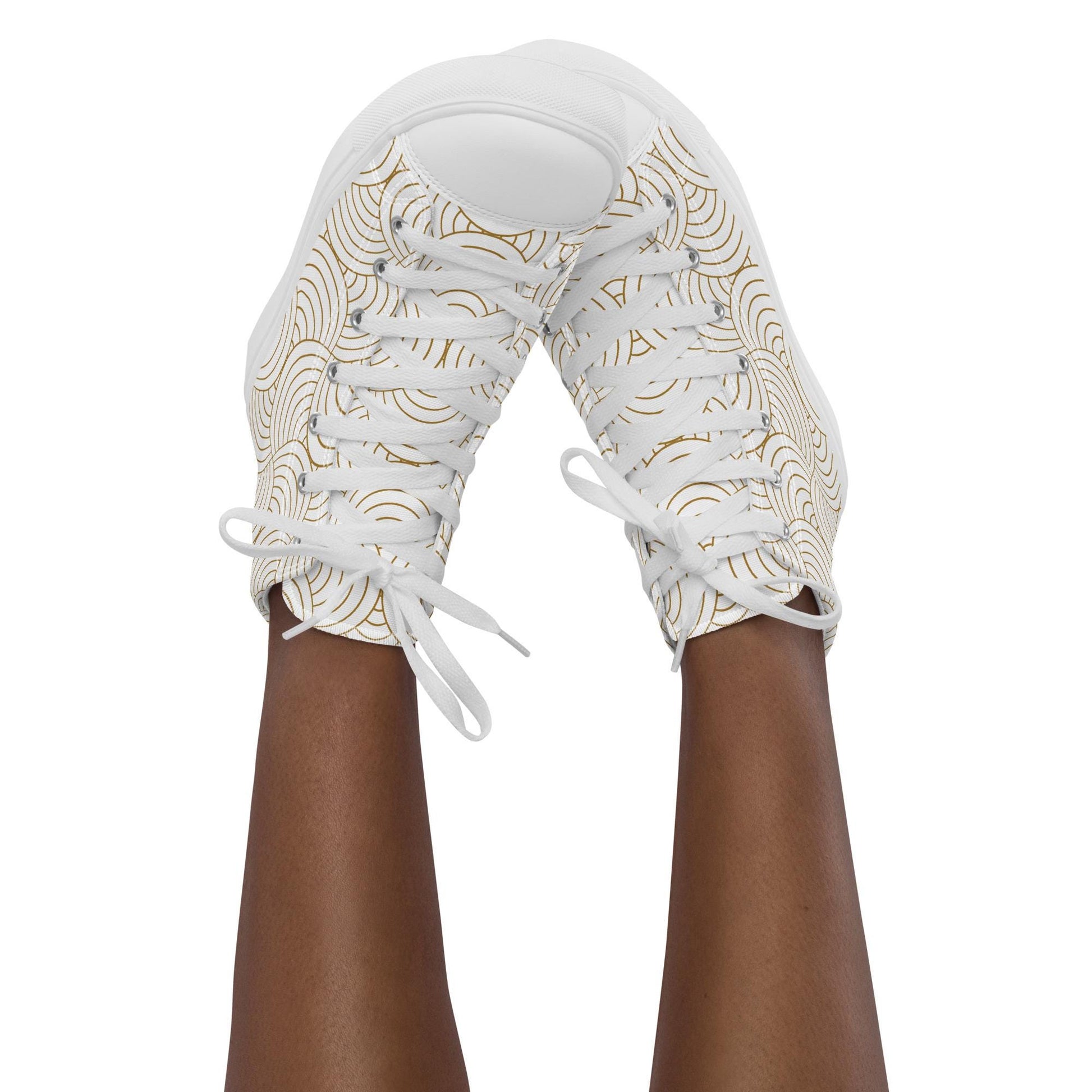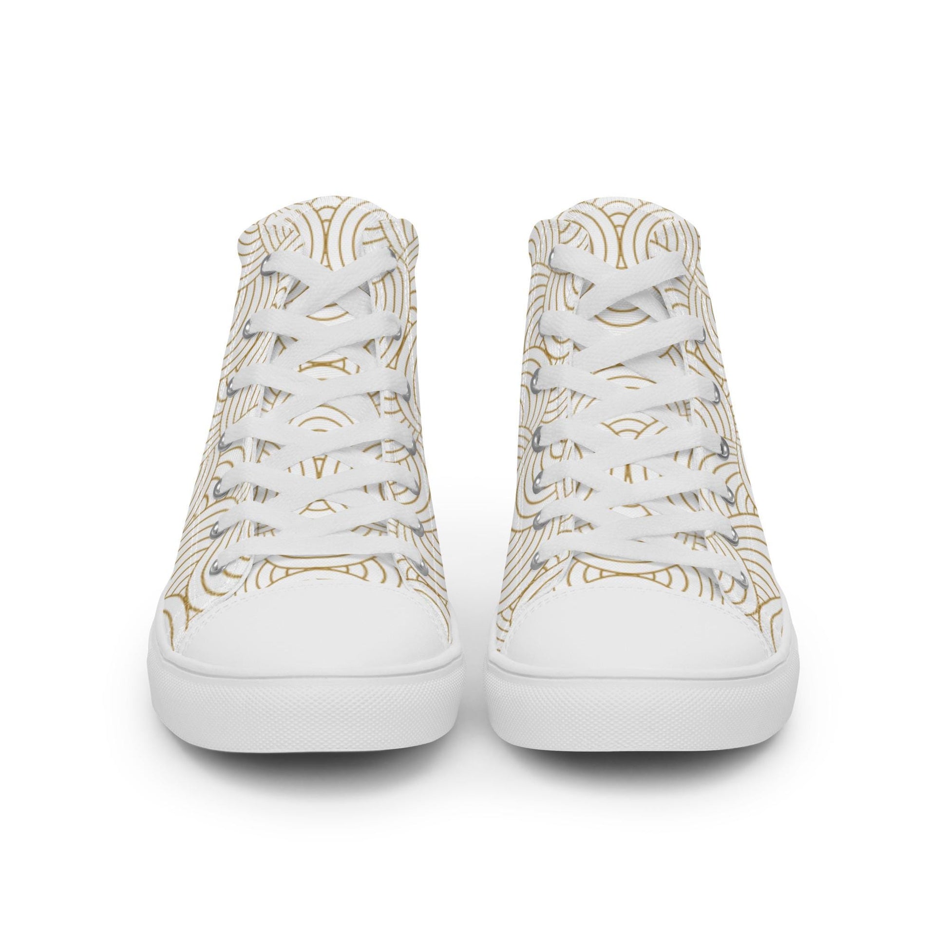 Baskets hautes en toile femme - Blanc et Or – Légères et confortables – Graphique