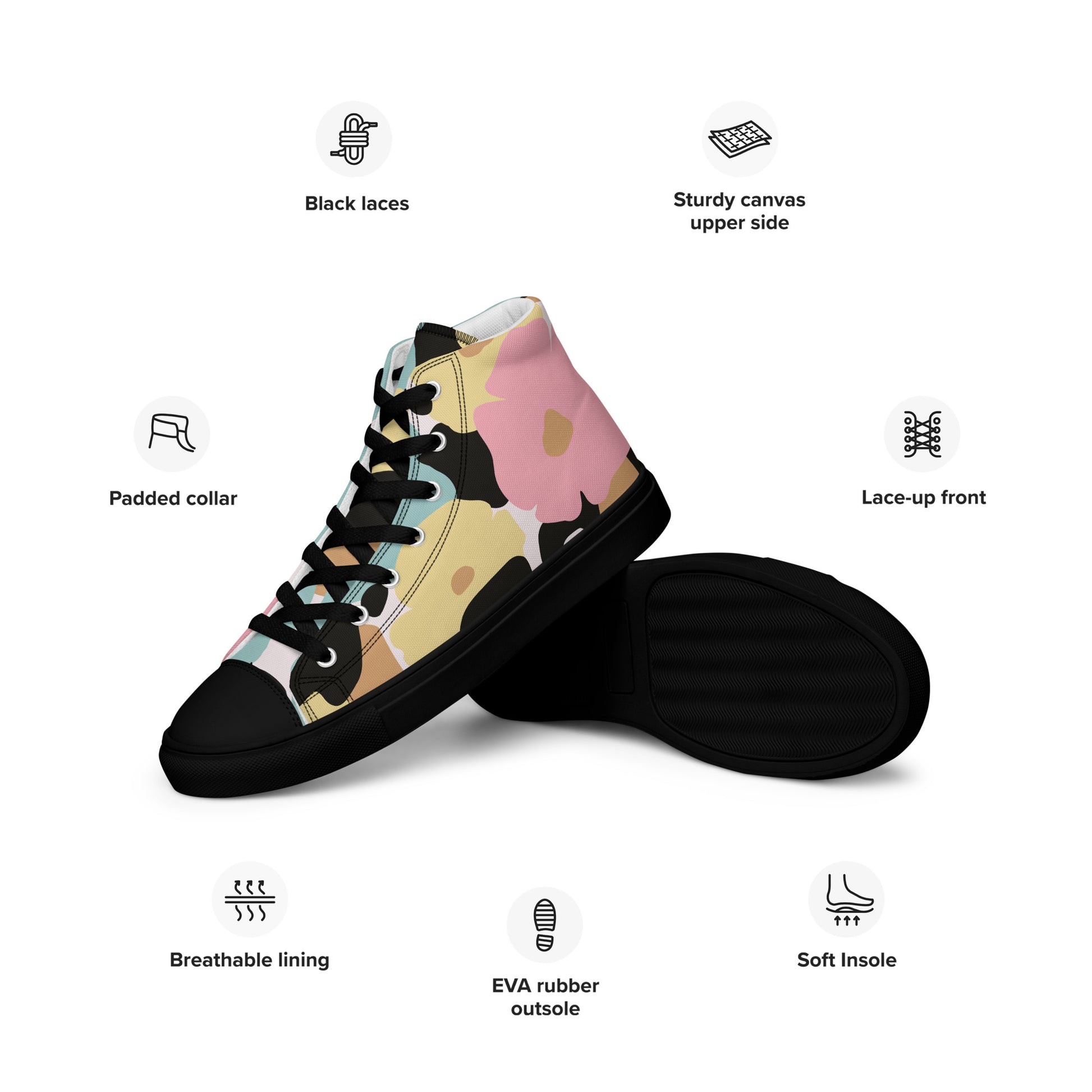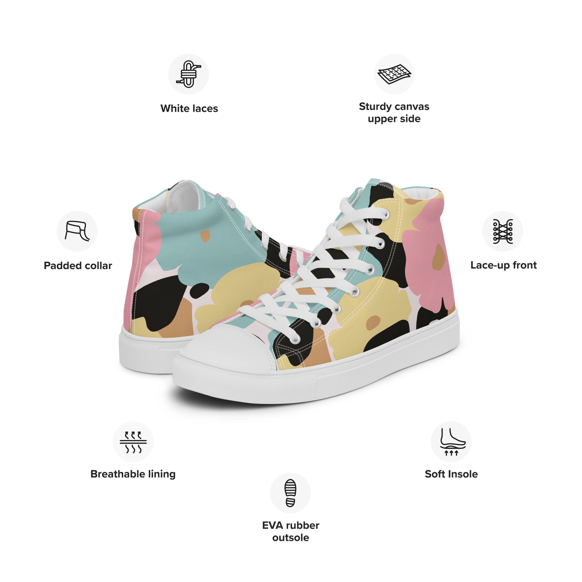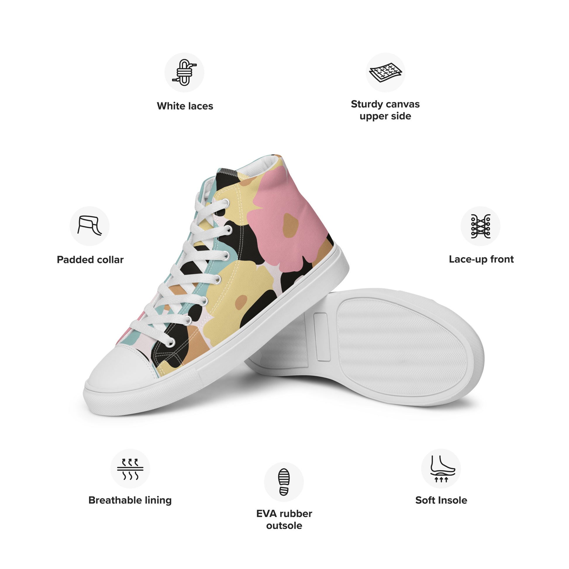 Baskets hautes en toile femme - Fleuri, Pastel – Légères et confortables – Minimaliste
