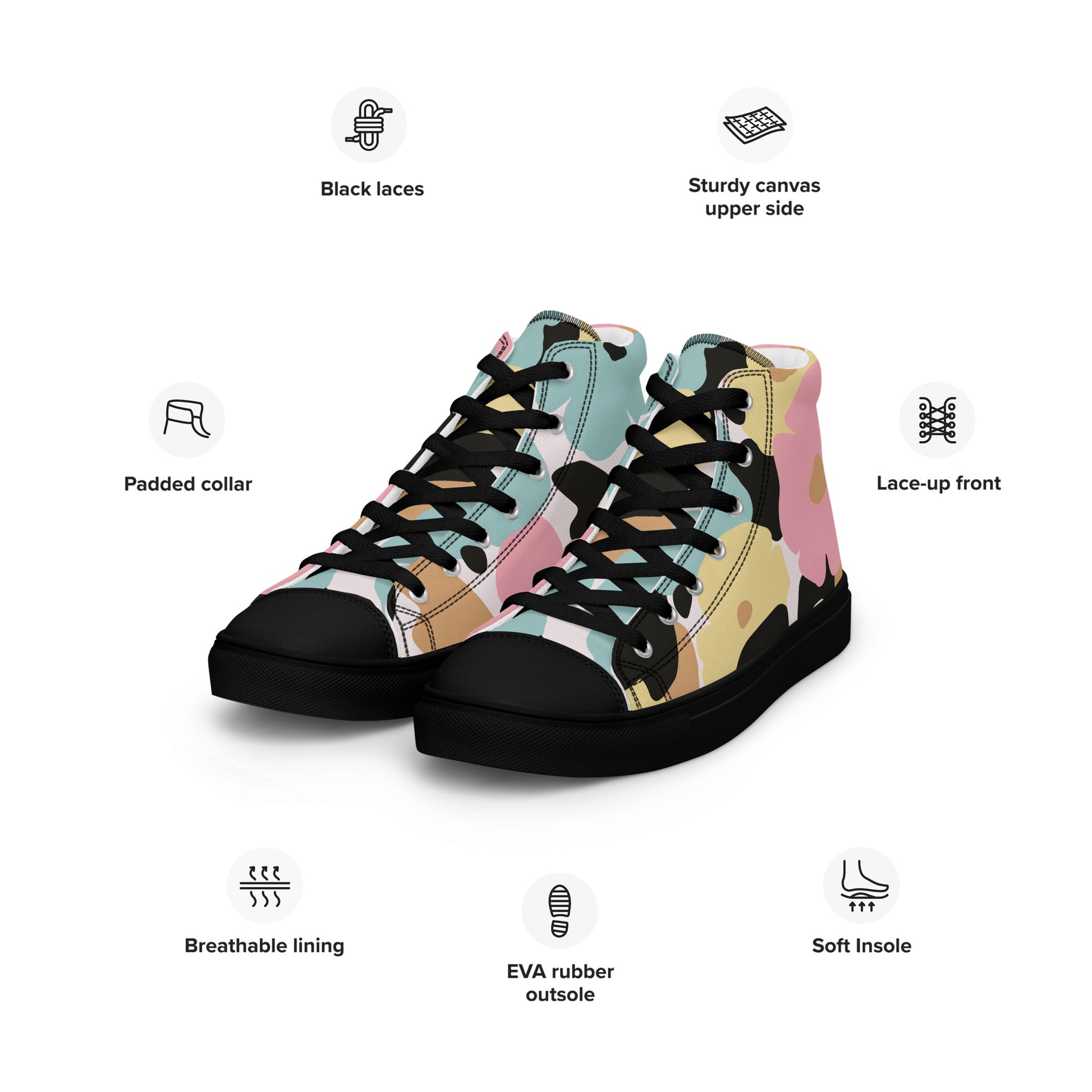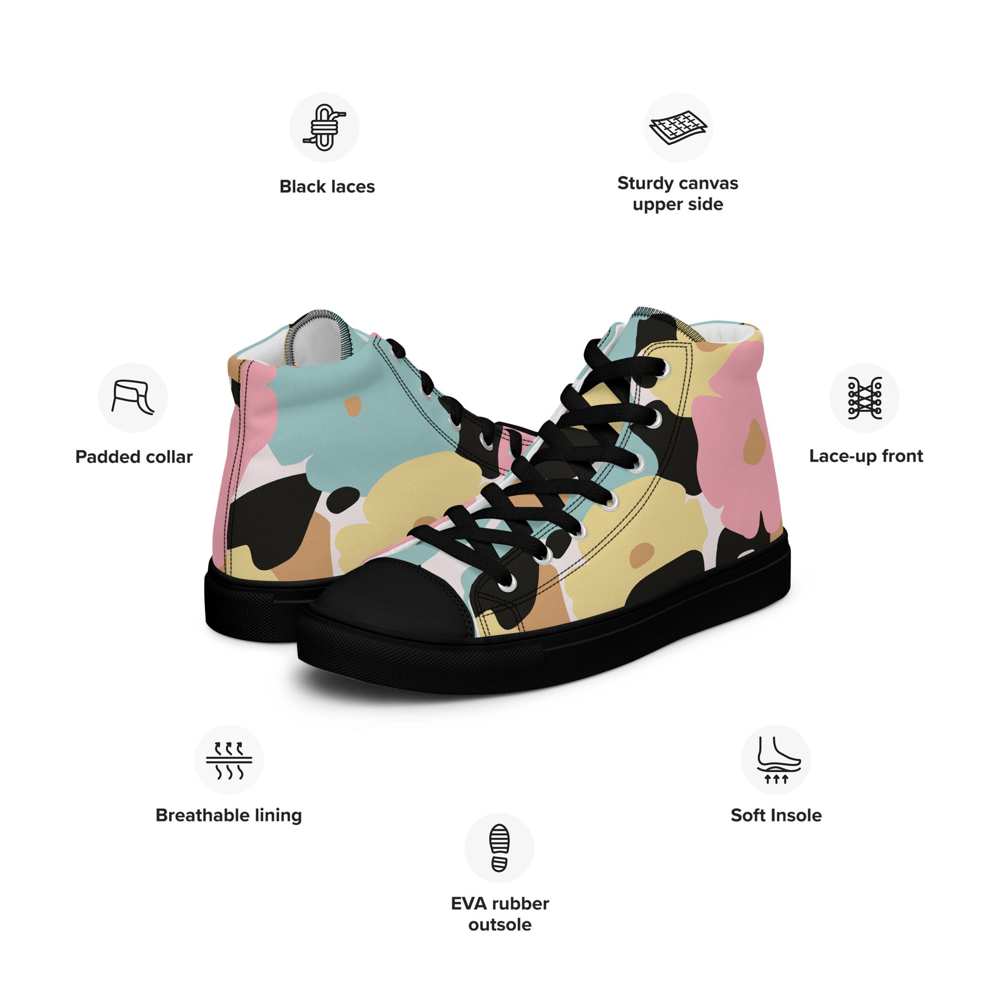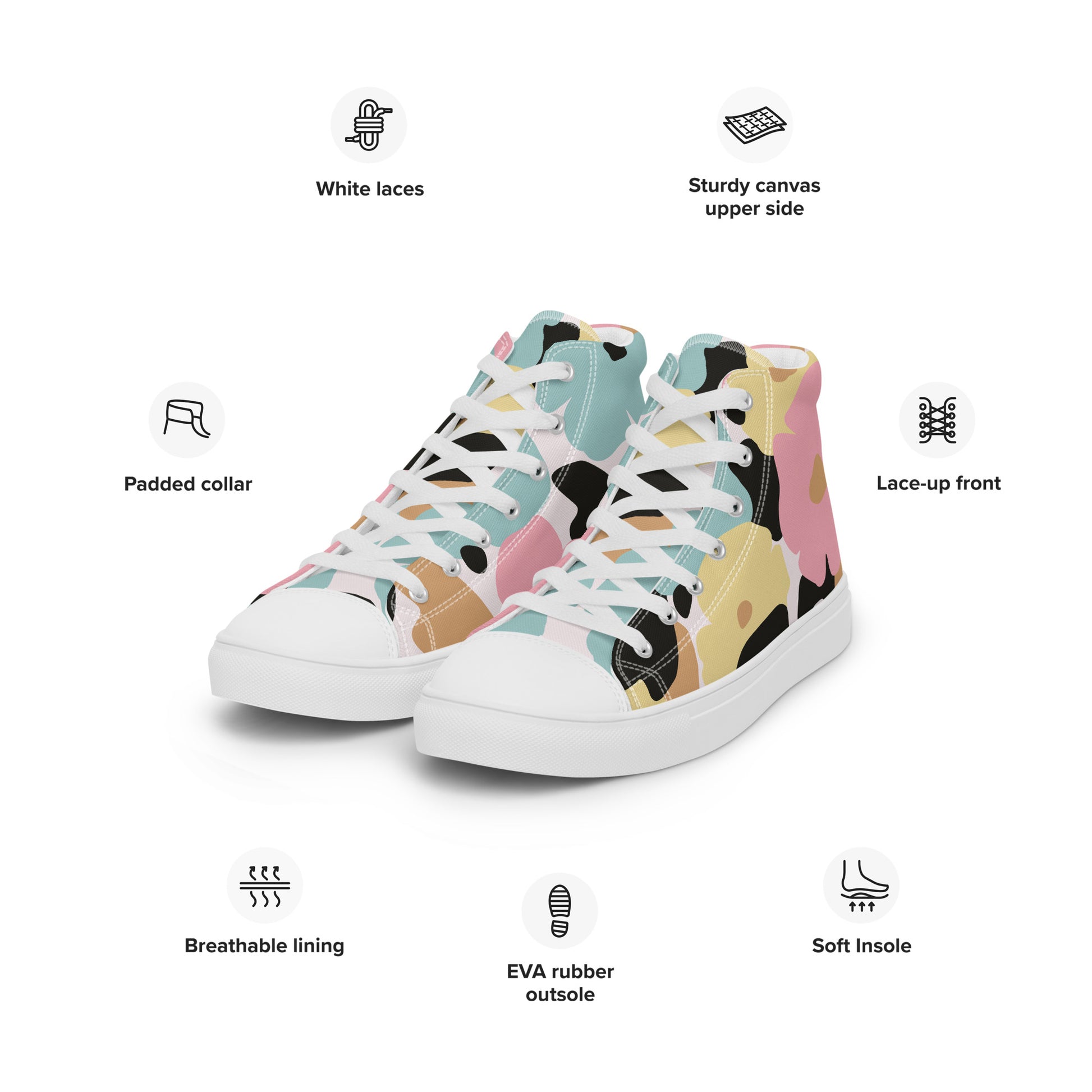 Baskets hautes en toile femme - Fleuri, Pastel – Légères et confortables – Minimaliste