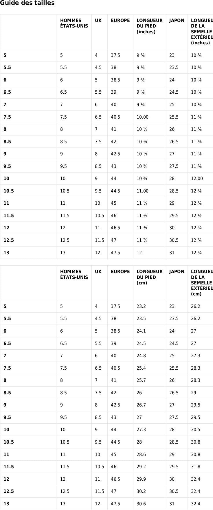 Avertissement : les chaussures auront une odeur ressemblant à la colle lors de l'ouverture de la boîte. L'odeur disparaîtra quelques jours après l'ouverture.