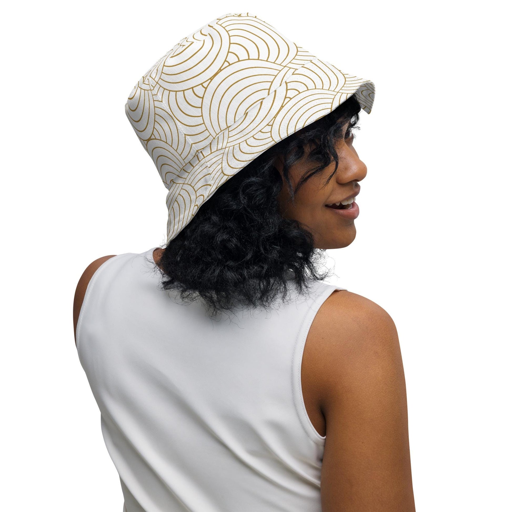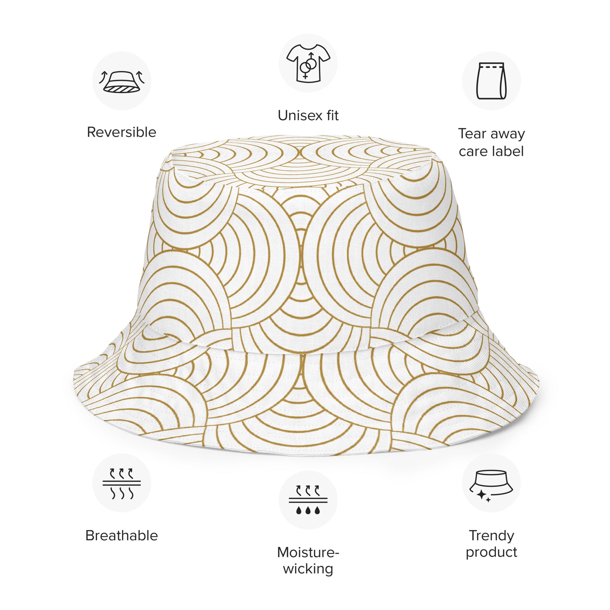Bob réversible unisexe - Blanc et Or – Léger, respirant et 2-en-1 – Graphique Minimaliste