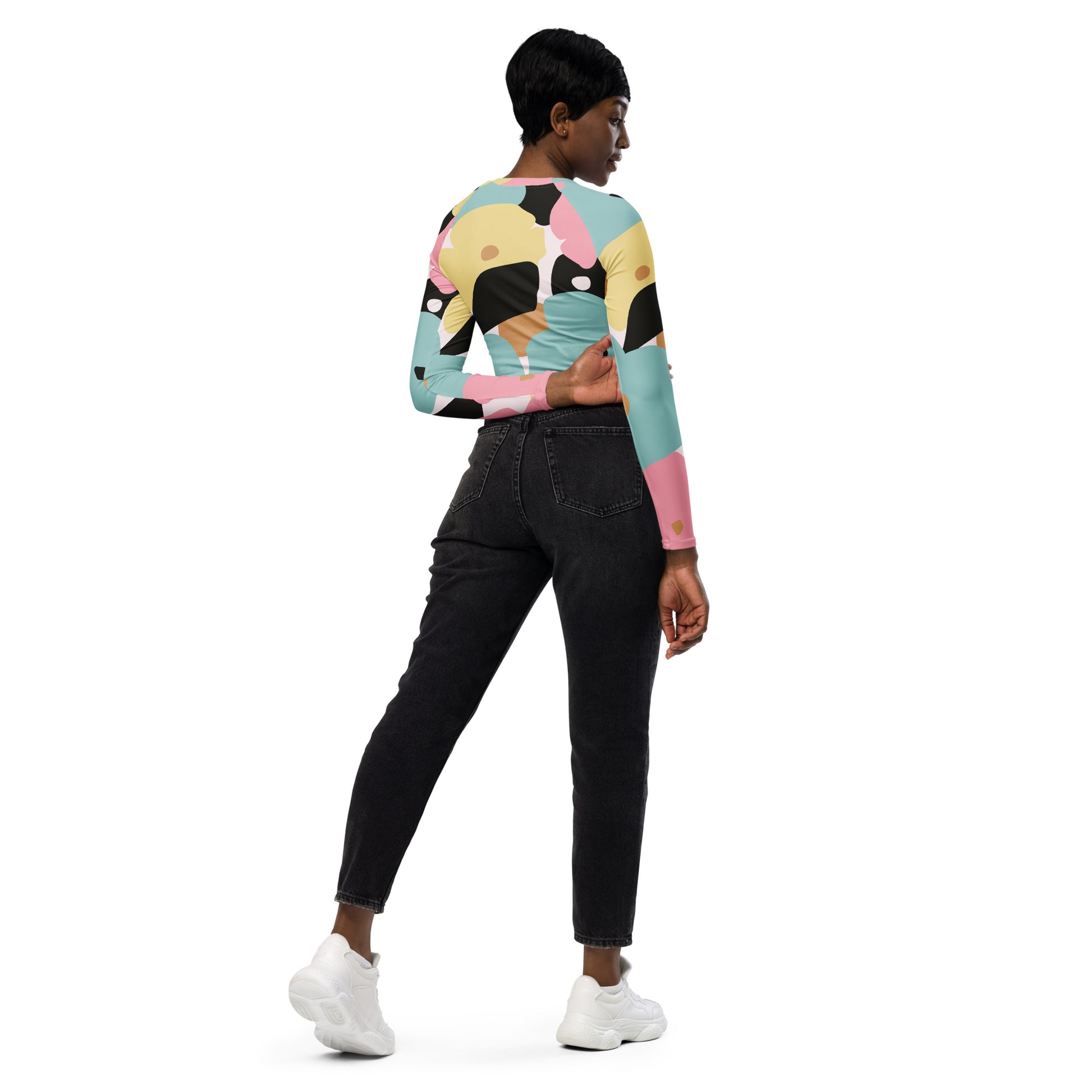 Crop top manches longues pour femme – Fleuri, Pastel – Polyester recyclé, haut court éco-responsable & confortable