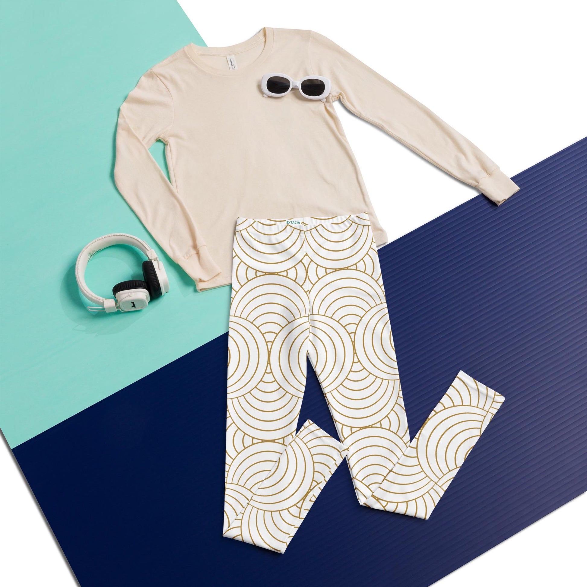 Legging pour fille ado – Blanc & Or à spirales – Maintien confortable & liberté de mouvement