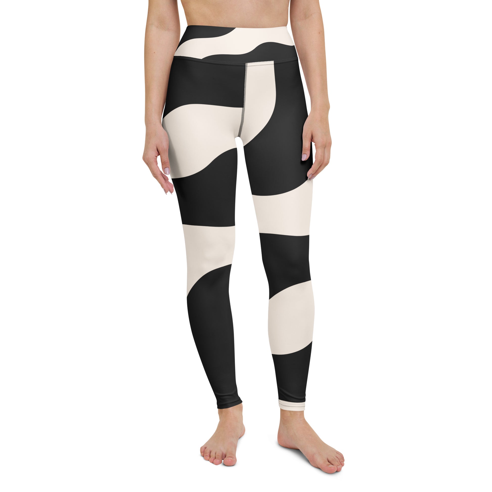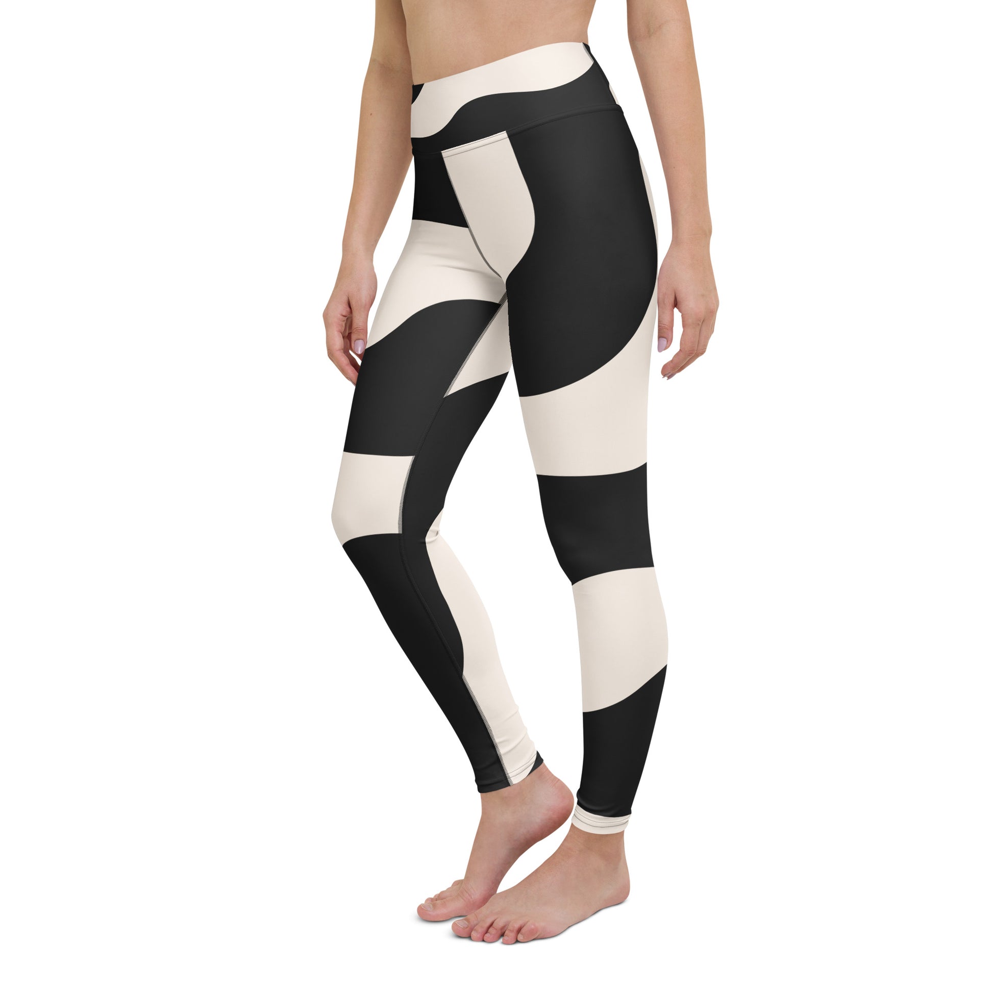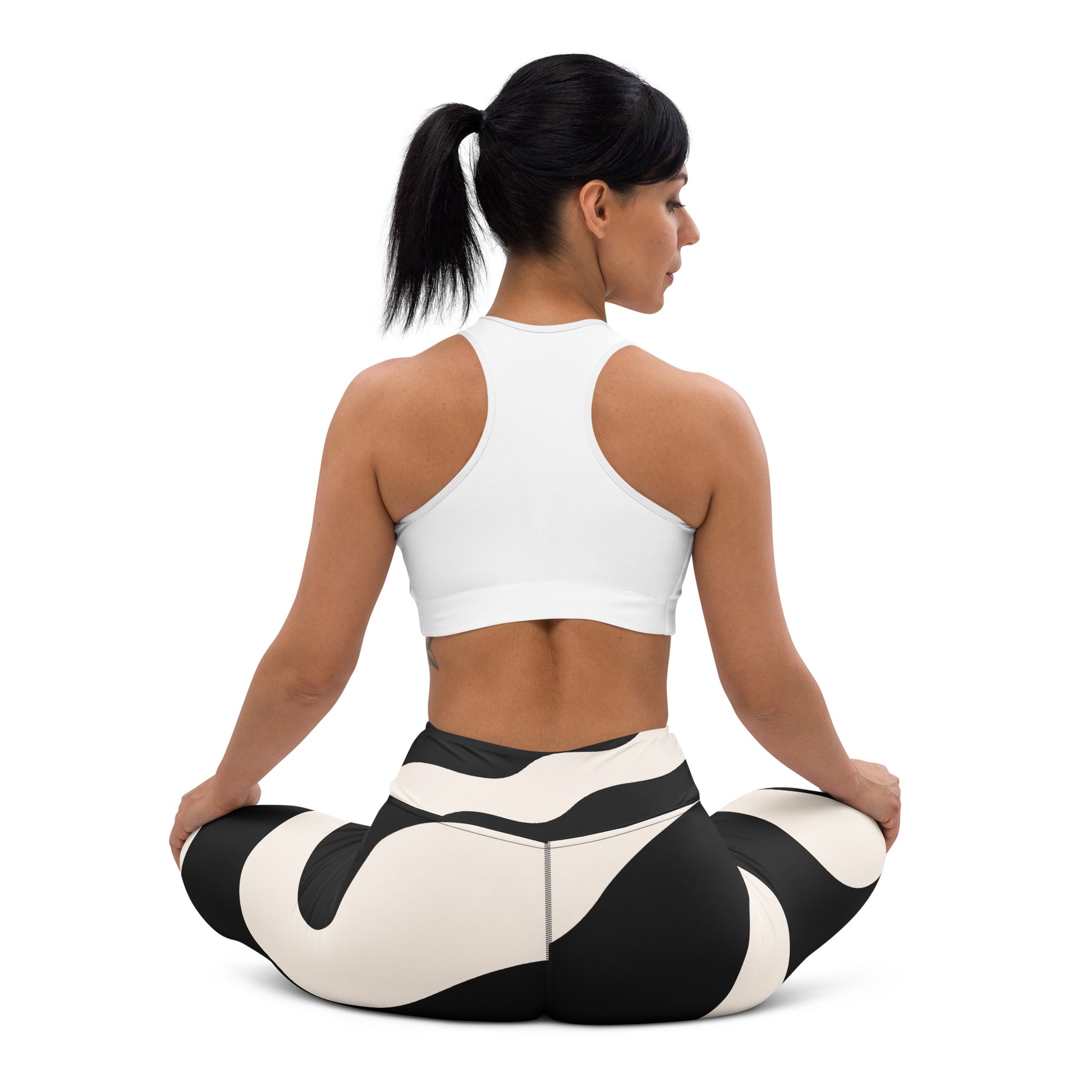 Legging de yoga pour femme – Beige & Noir – Stretch, taille haute, séchage rapide – Graphique Minimaliste