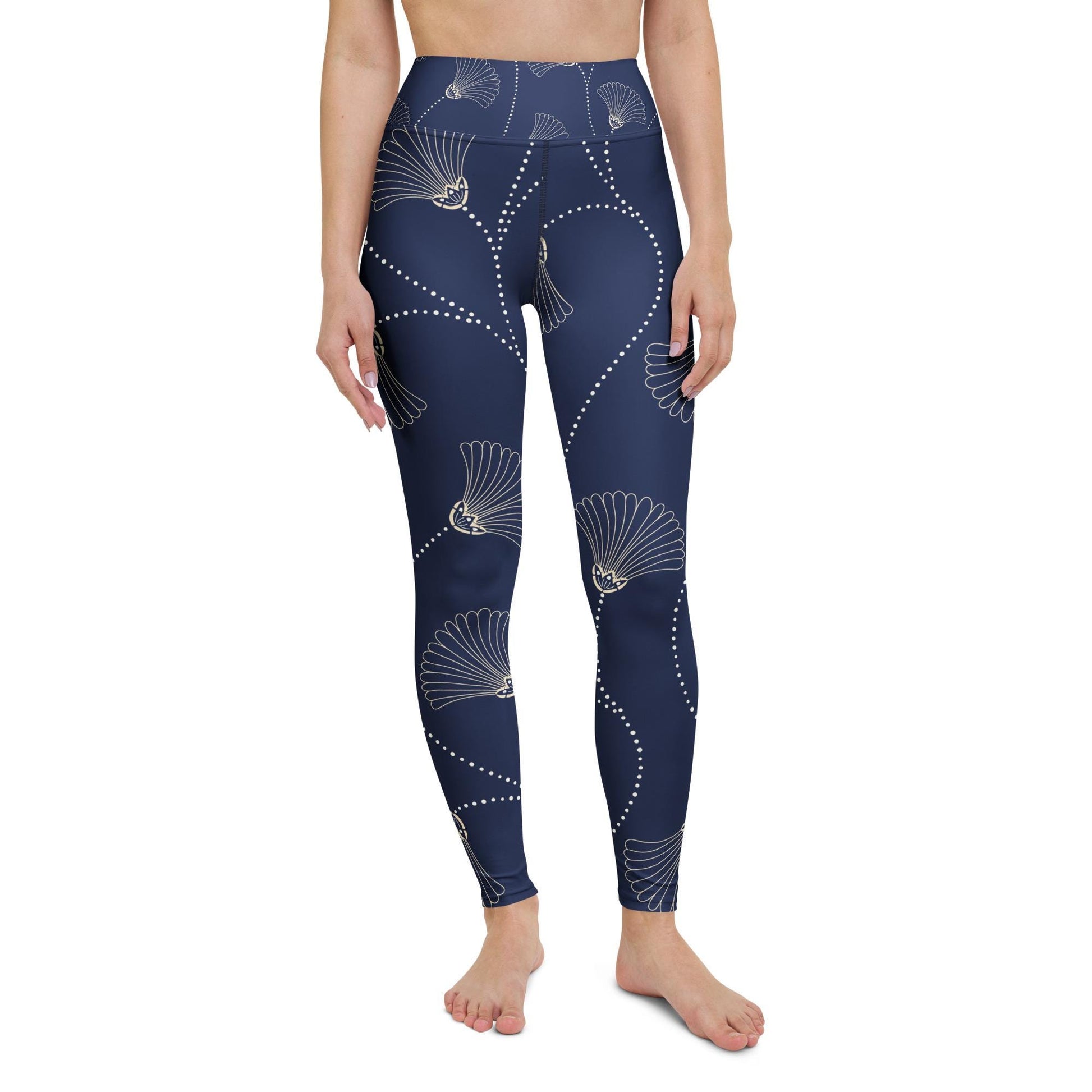 Legging de yoga pour femme – Bleu, Fleuri – Stretch, taille haute, séchage rapide – Minimaliste