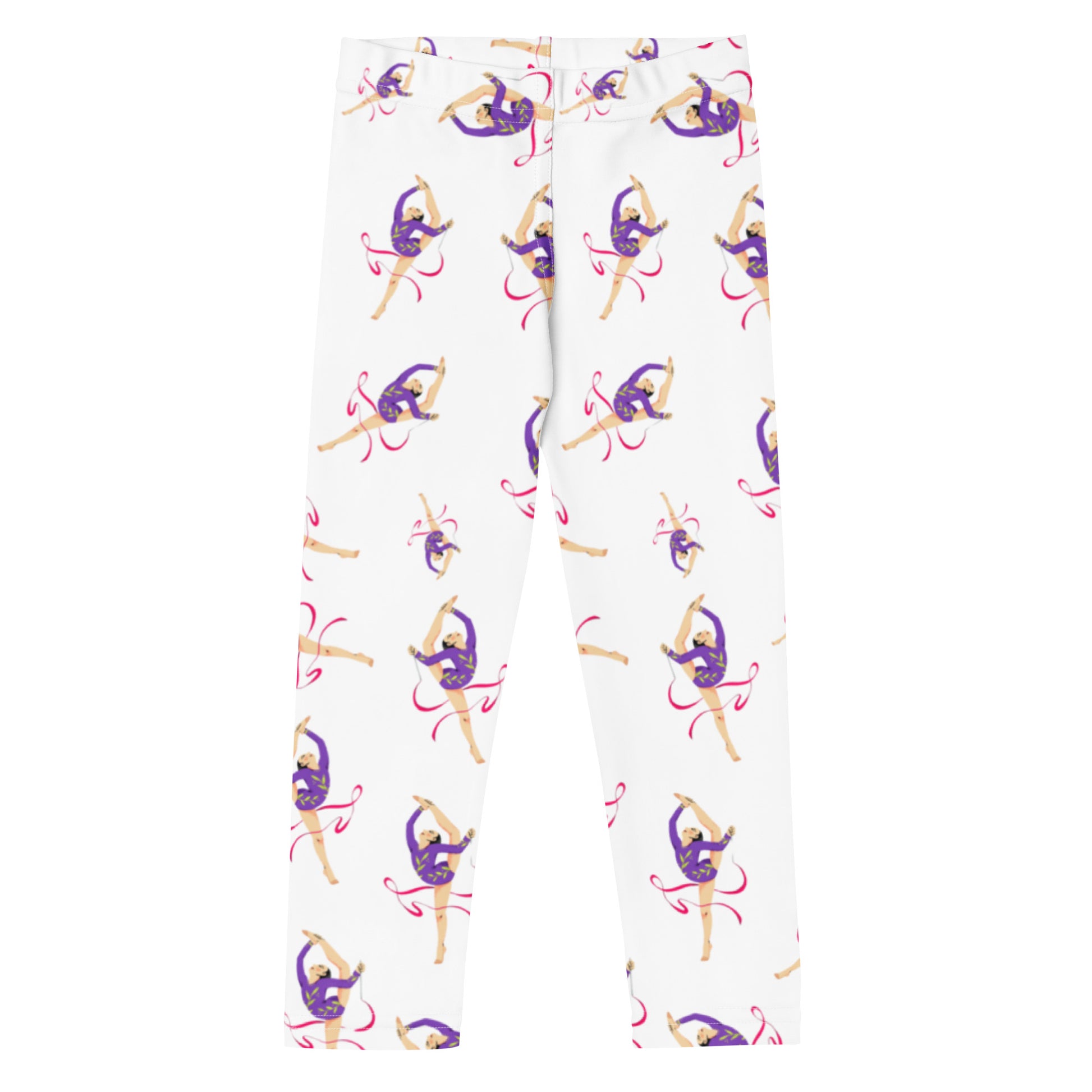 Legging pour petite fille – Blanc – Doux, extensible, toutes saisons – Motif Gymnaste Danseuse