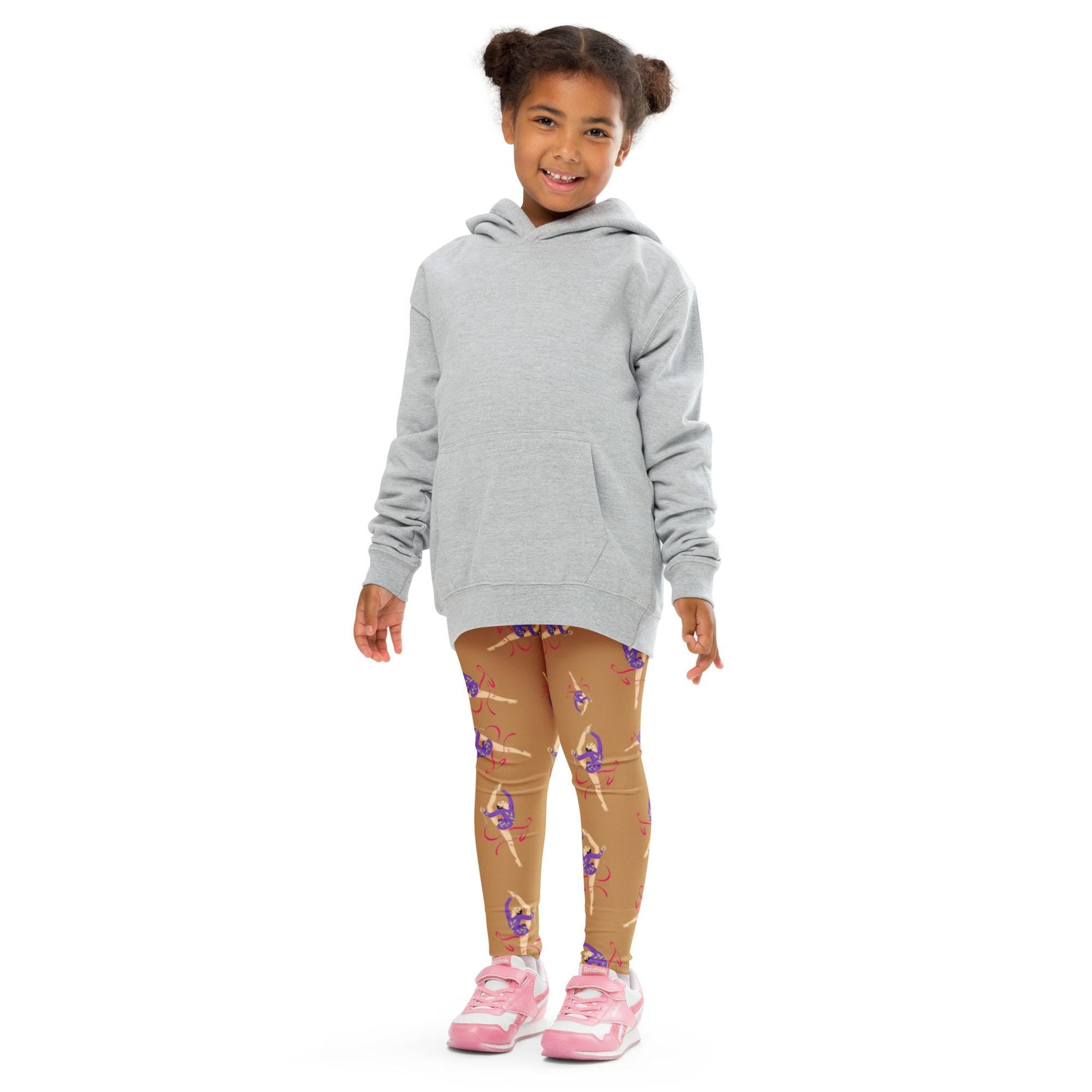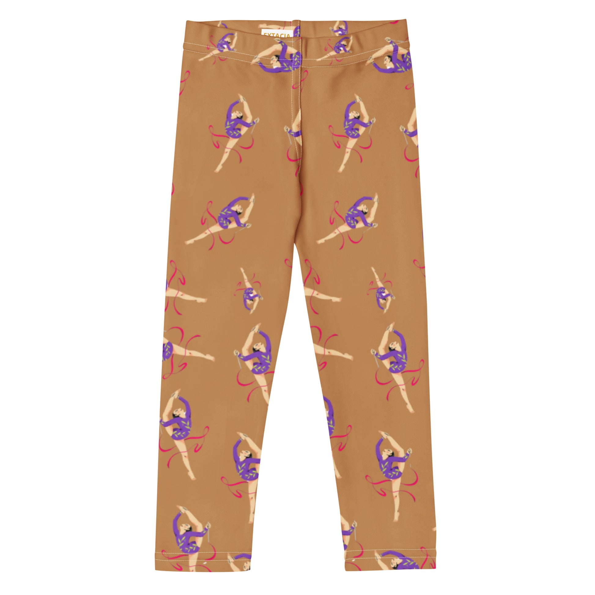 Legging pour petite fille – Camel – Doux, extensible, toutes saisons – Motif Gymnaste Danseuse