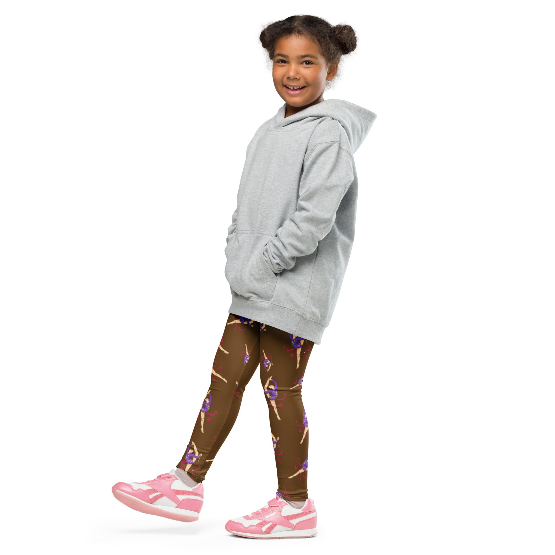 Legging pour petite fille – Marron – Doux, extensible, toutes saisons – Motif Gymnaste Danseuse