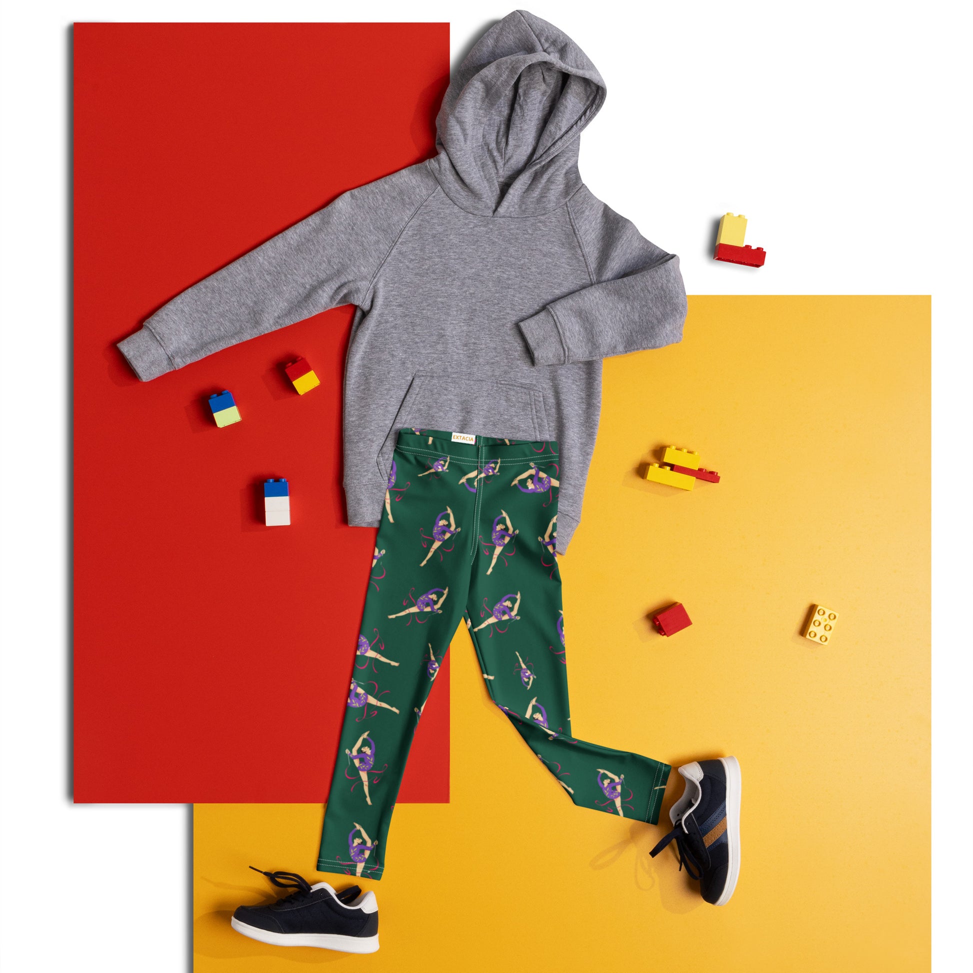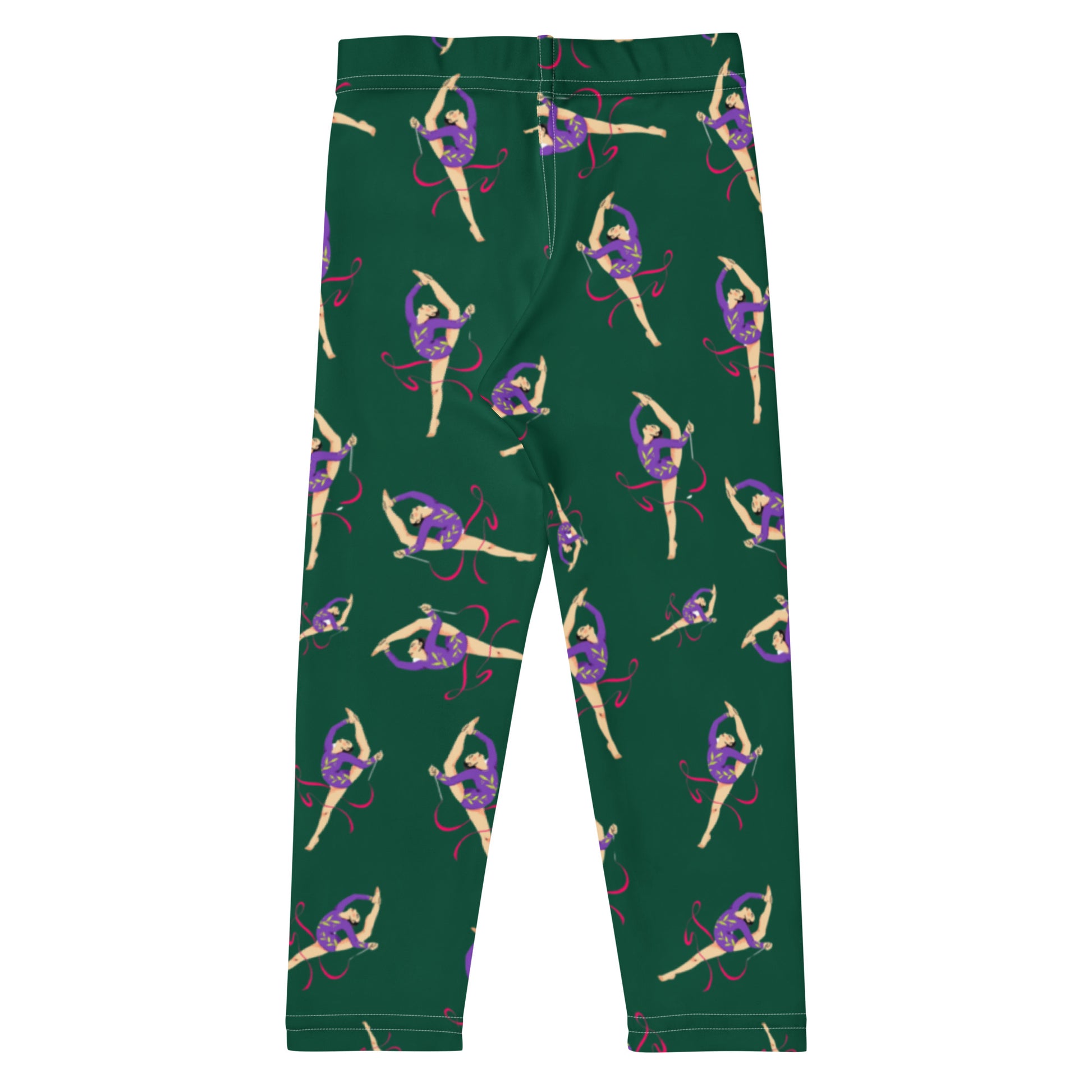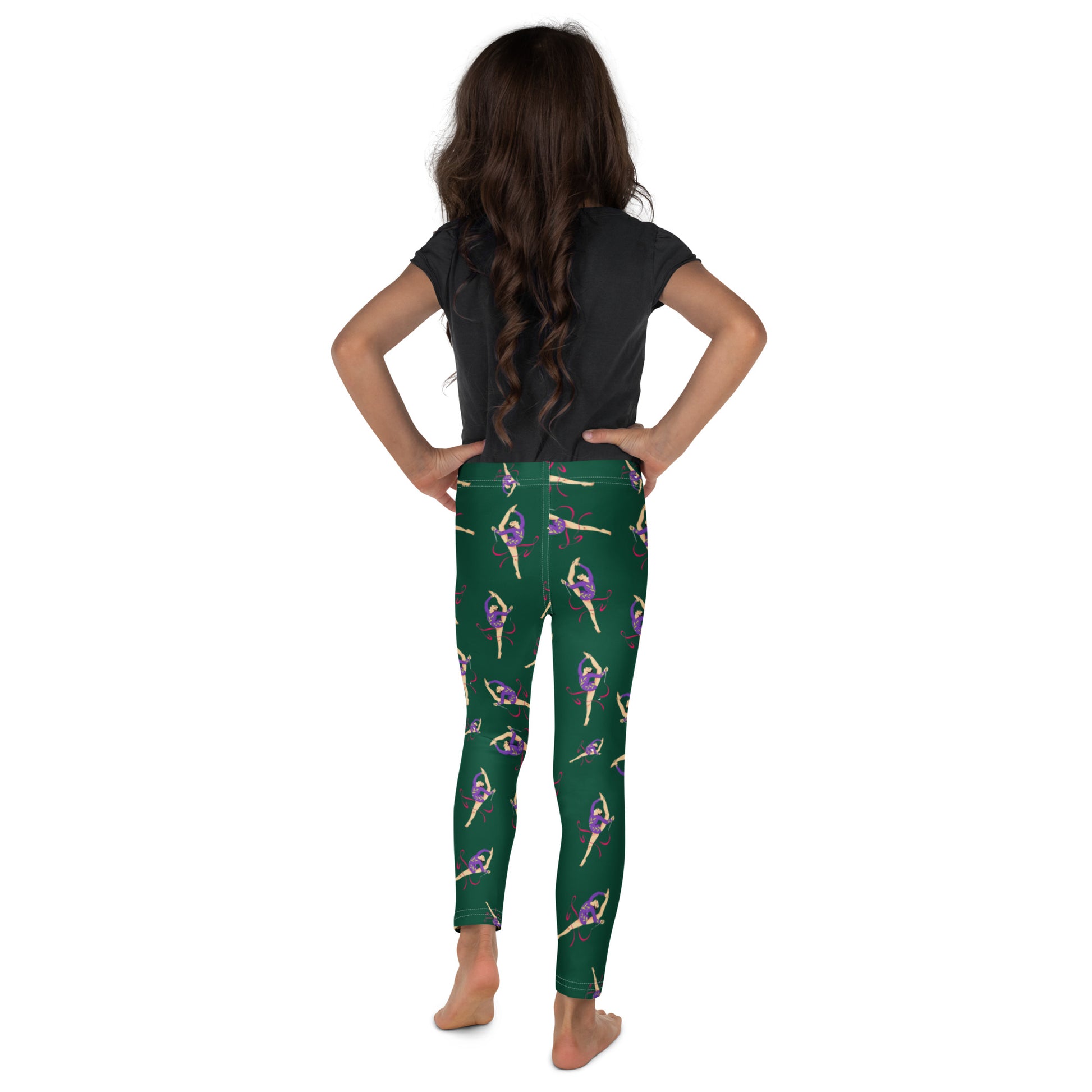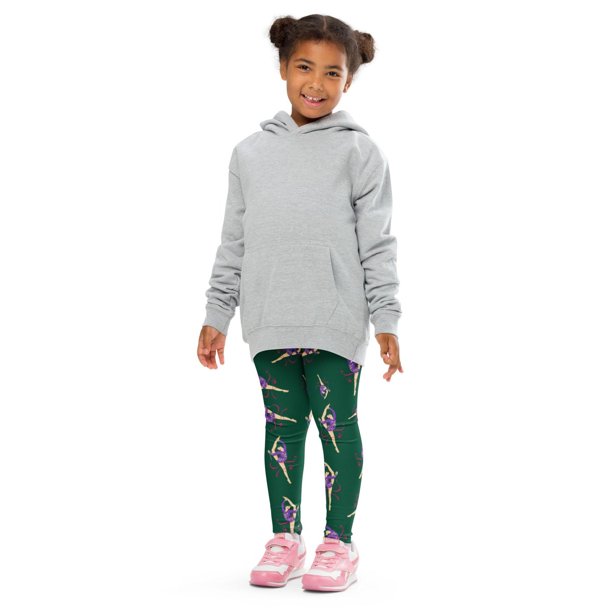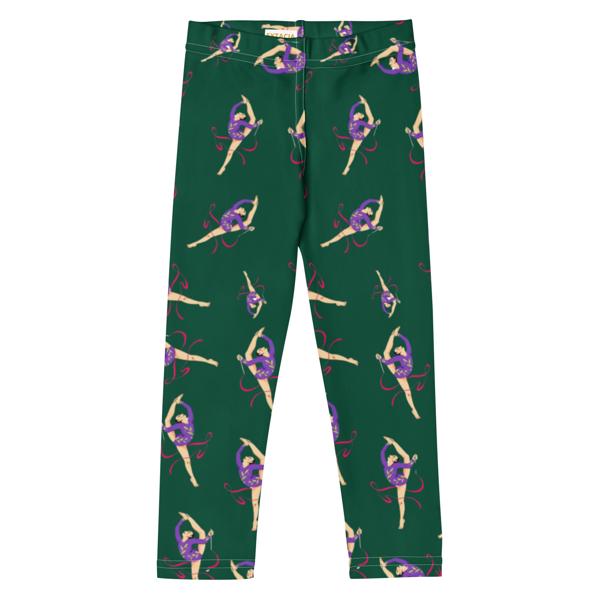 Legging pour petite fille – Vert Sapin – Doux, extensible, toutes saisons – Motif Gymnaste Danseuse