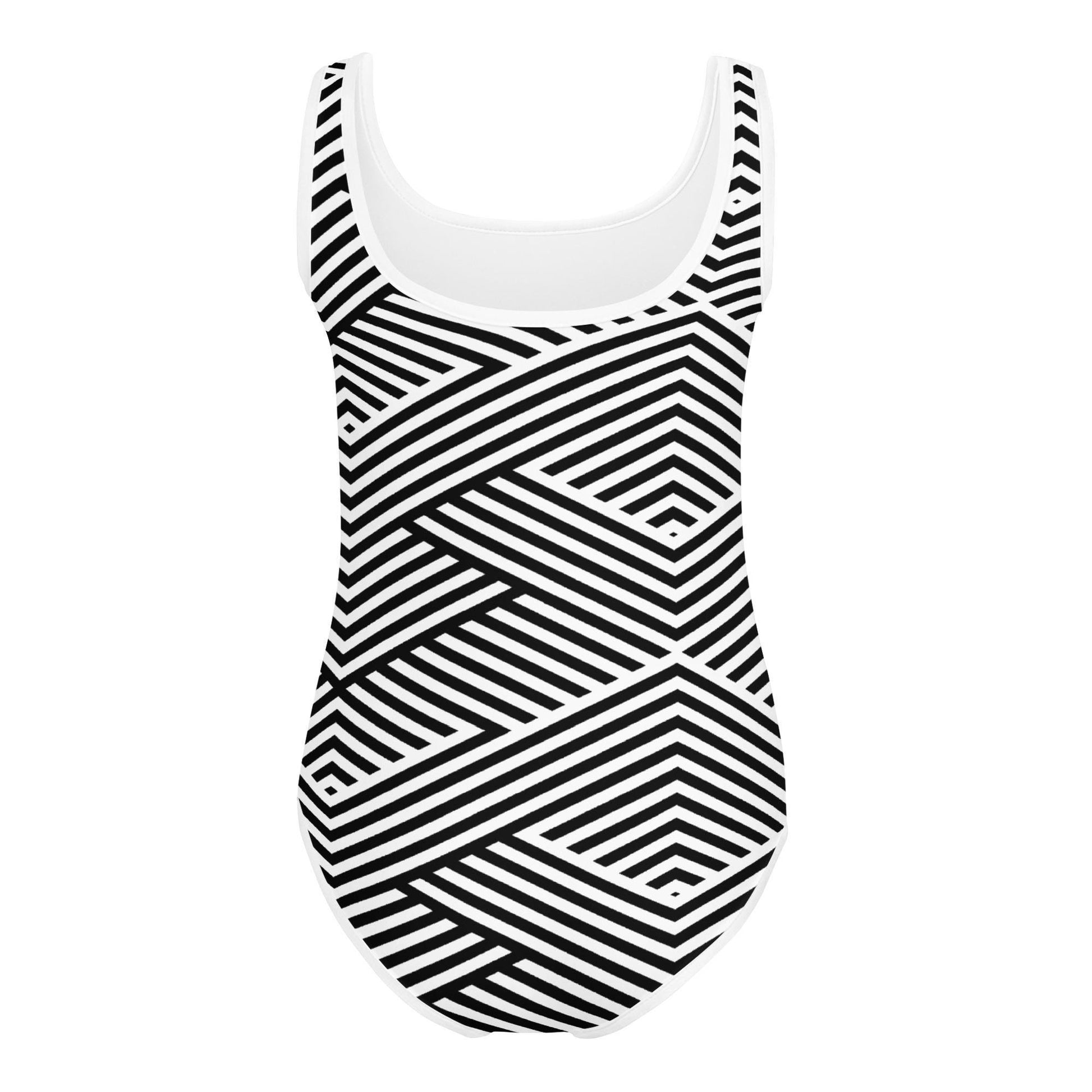 Maillot de bain 1 pièce pour petite fille – Blanc & Noir – Confort, maintien & séchage rapide – Graphique