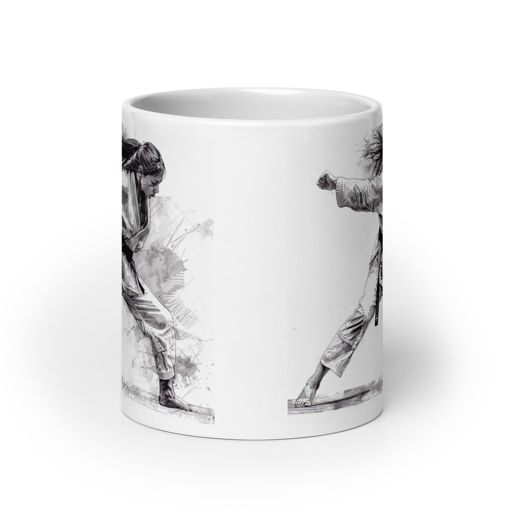 Mug en céramique – Blanc – Formats 11, 15, 20 oz, design élégant pour bureau & cuisine – Dessin Femme Judoka