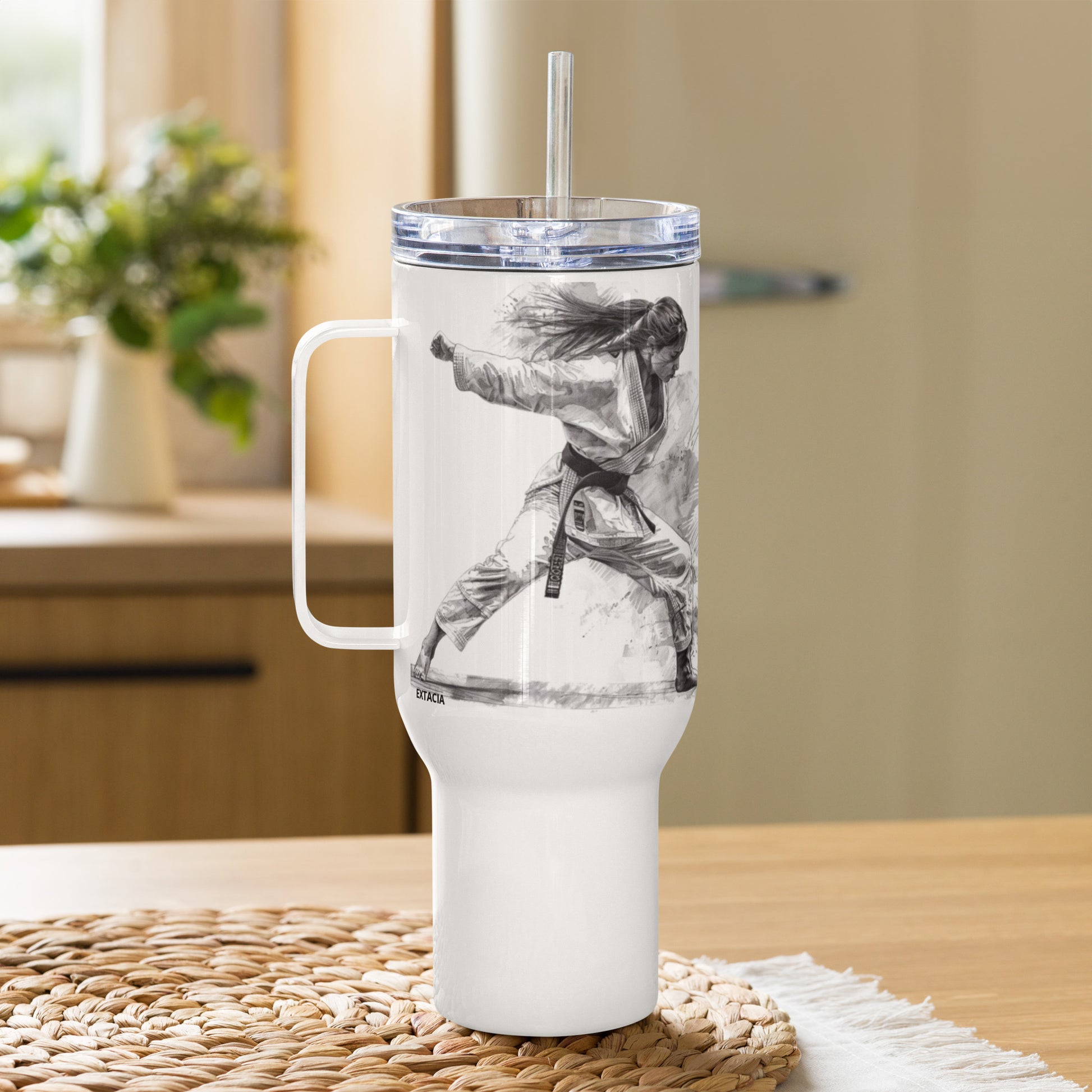 Mug isotherme inox – Blanc – 25 & 40 oz – Anse intégrée & double-paroi durable - Femme Judoka