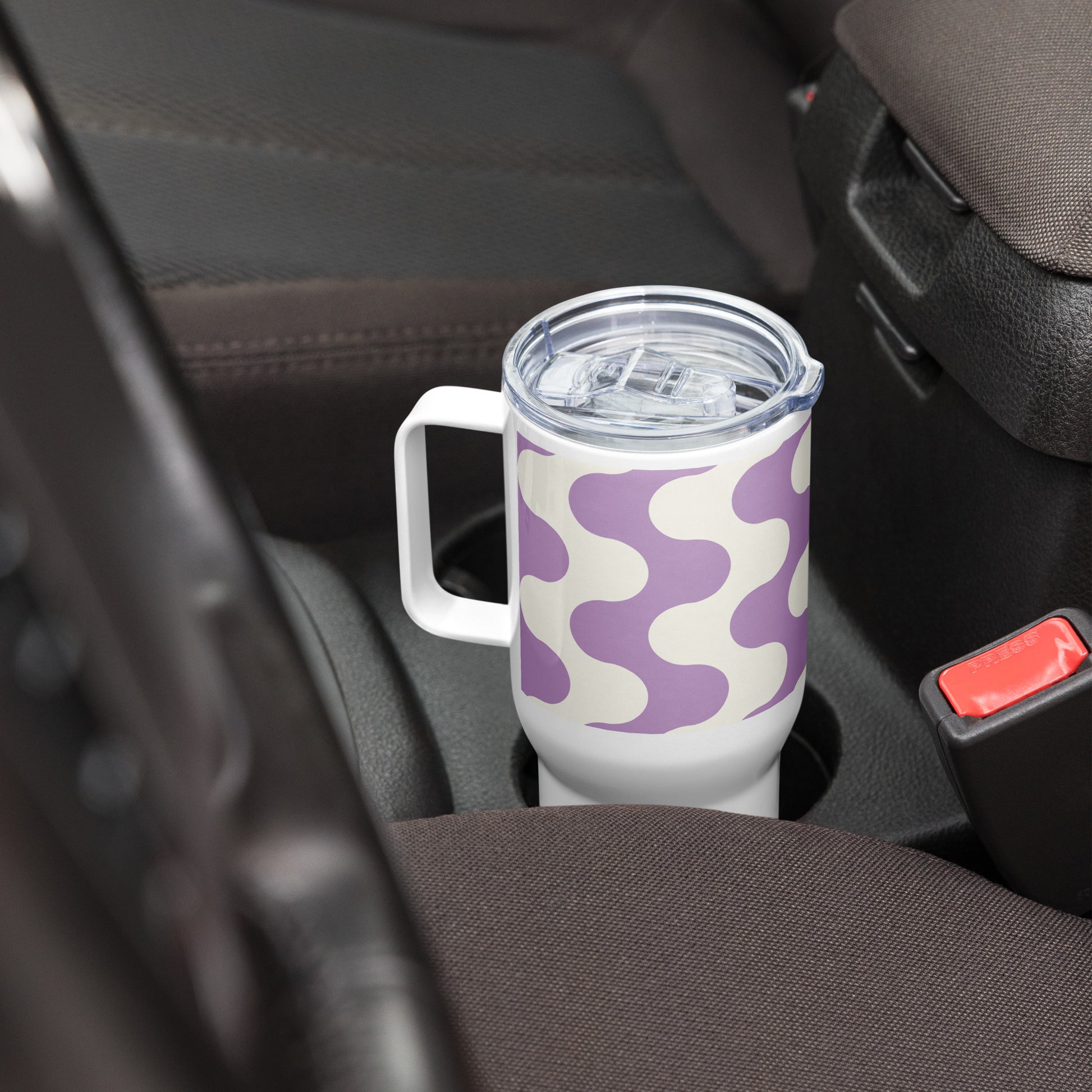 Mug isotherme inox – Blanc & Violet à ondulations – Confort nomade & boisson idéale plus longtemps
