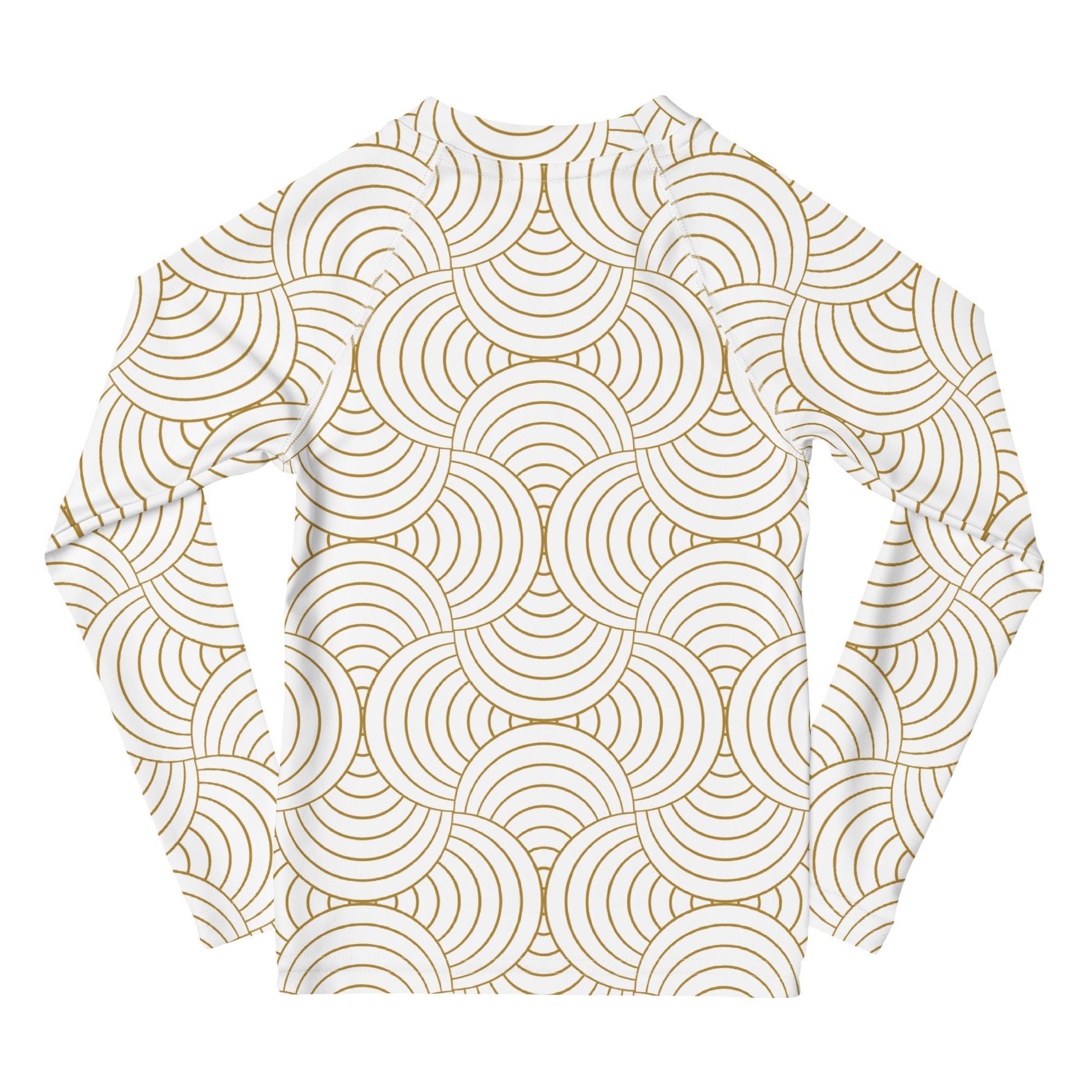 Rash guard enfant – Blanc & Or à spirales – Confort près du corps & séchage rapide