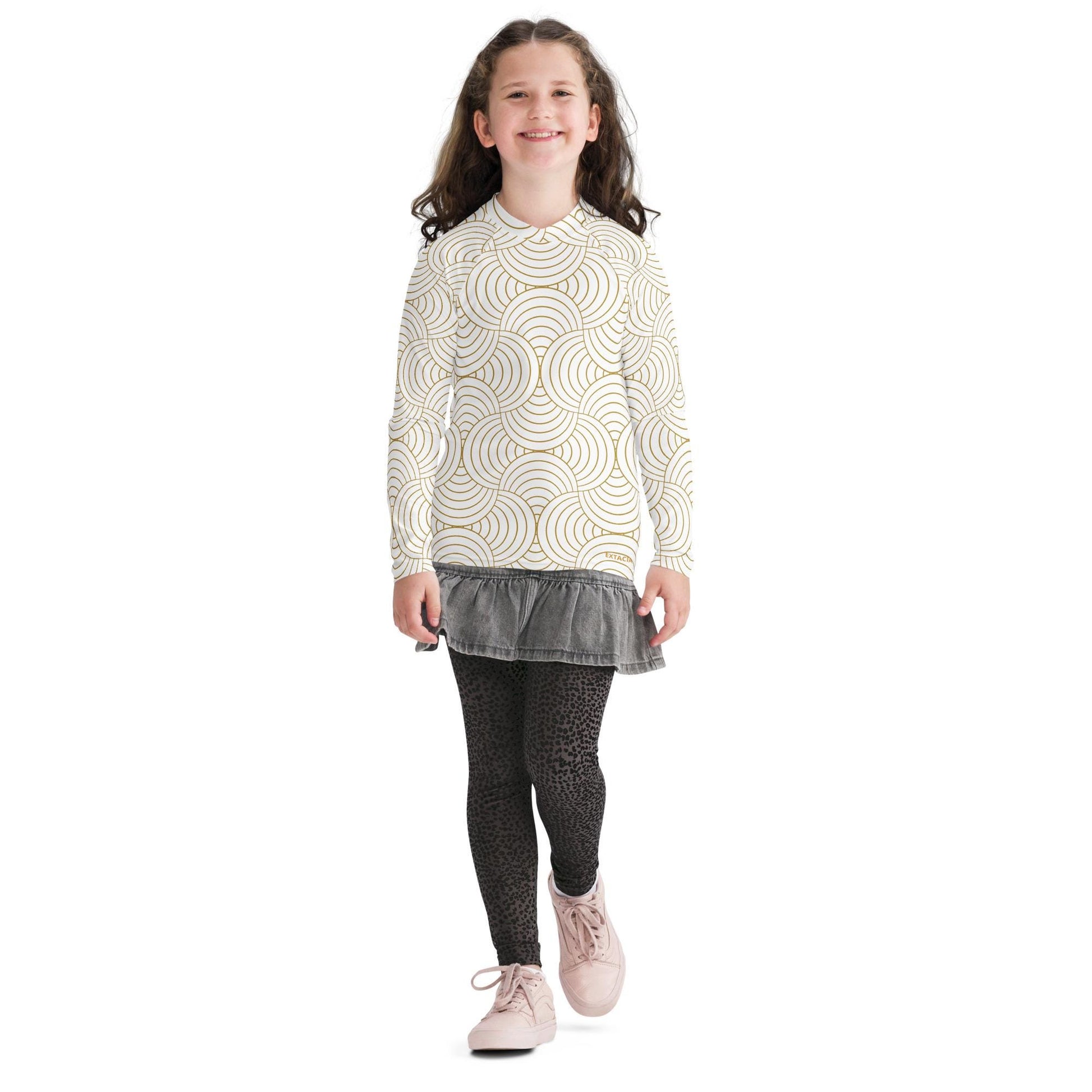 Rash guard pour fille ado – Blanc & Or à spirales – Performance technique & confort près du corps