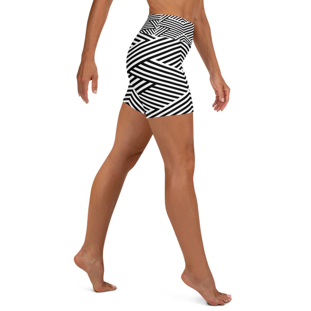 Short legging de yoga pour femme – Blanc & Noir – Stretch, taille haute, séchage rapide – Graphique