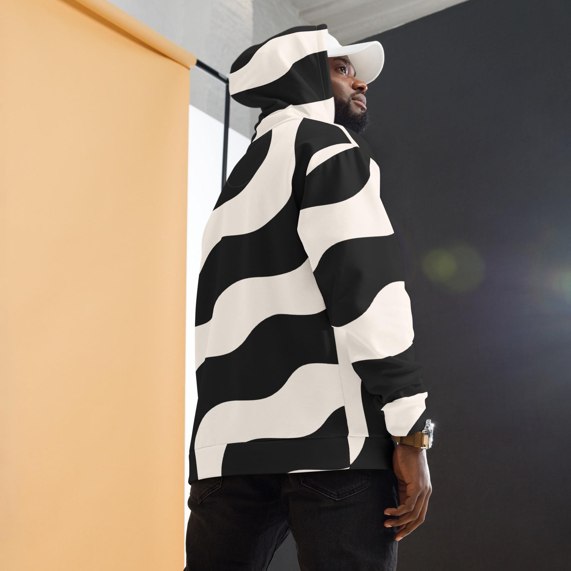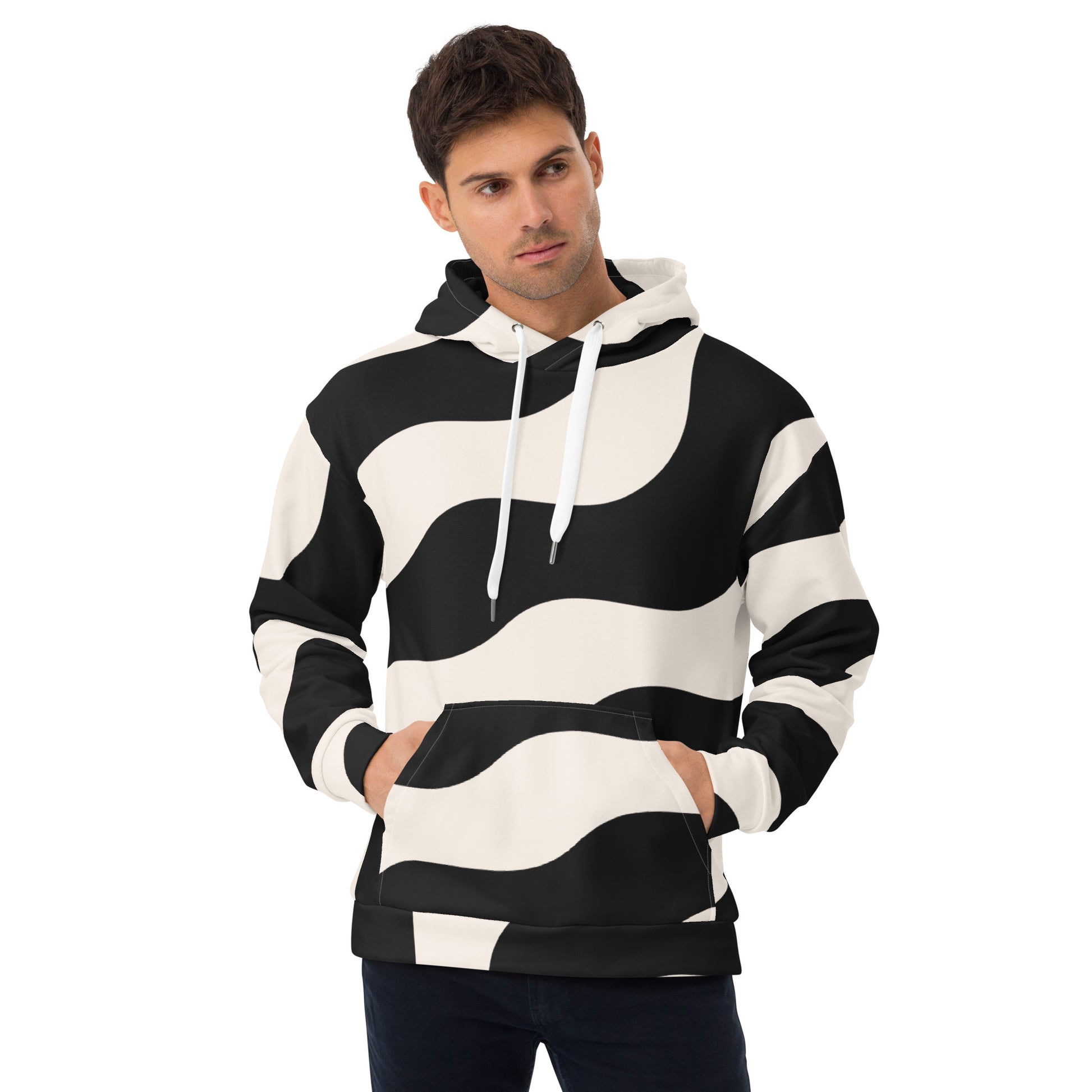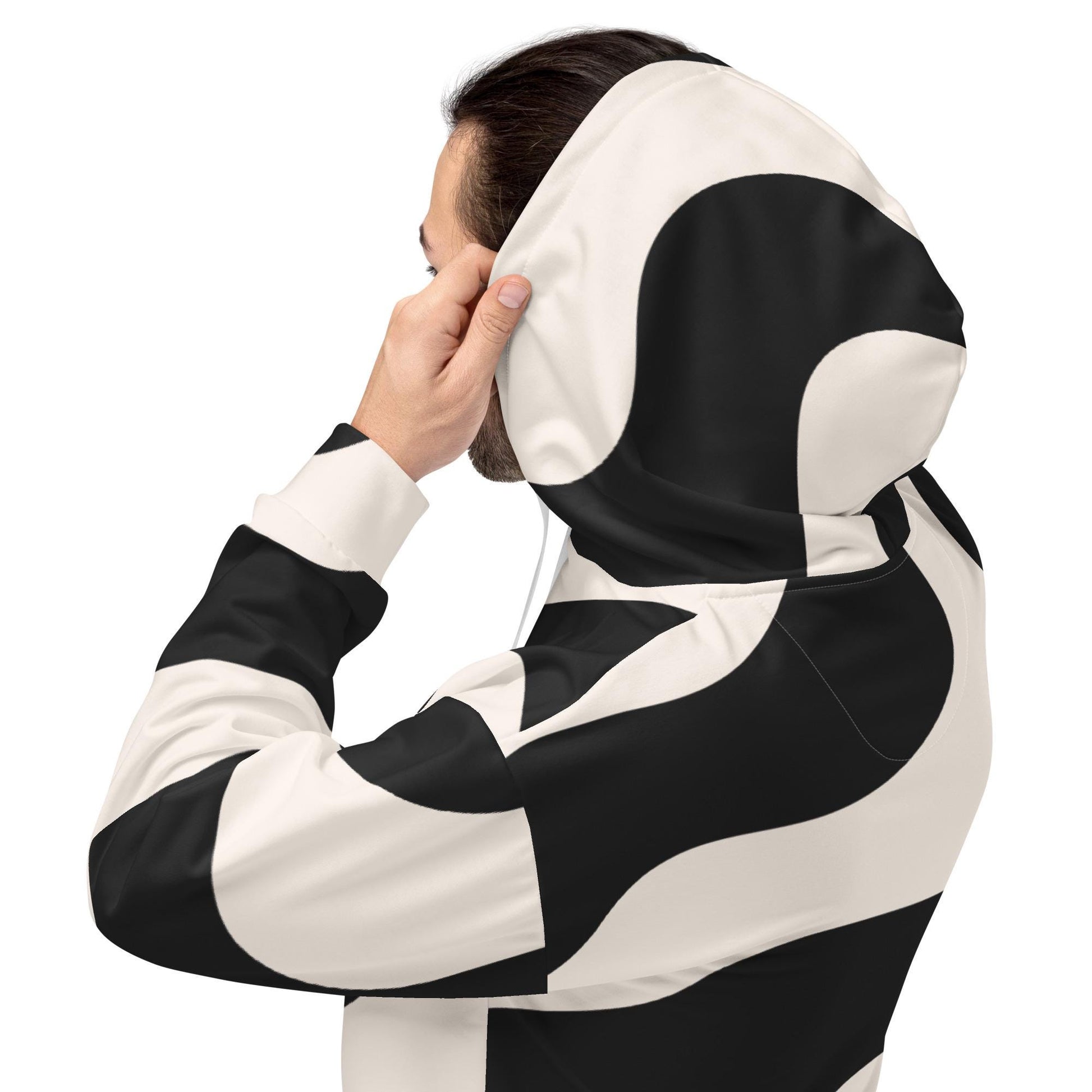 Sweat à capuche pour homme - Beige & Noir – Confort durable, matière recyclée – Graphique Minimaliste