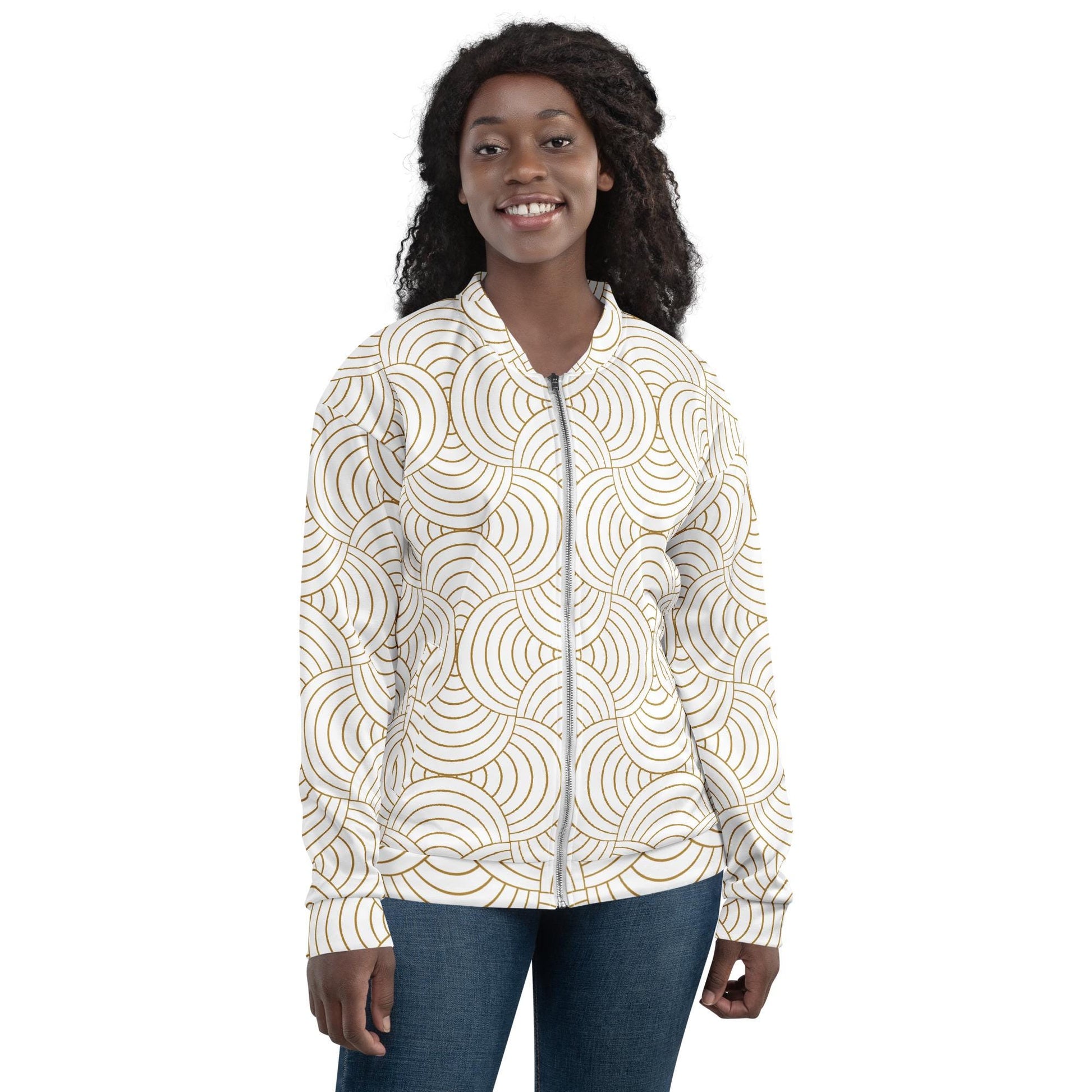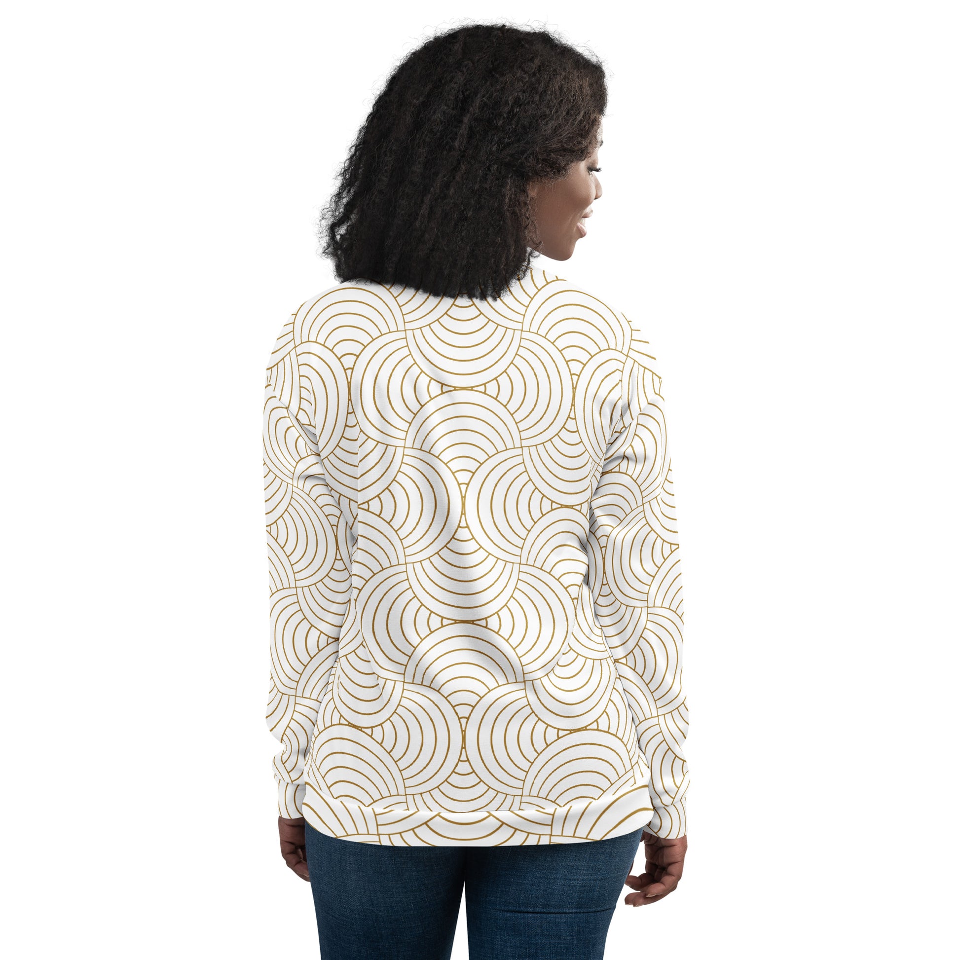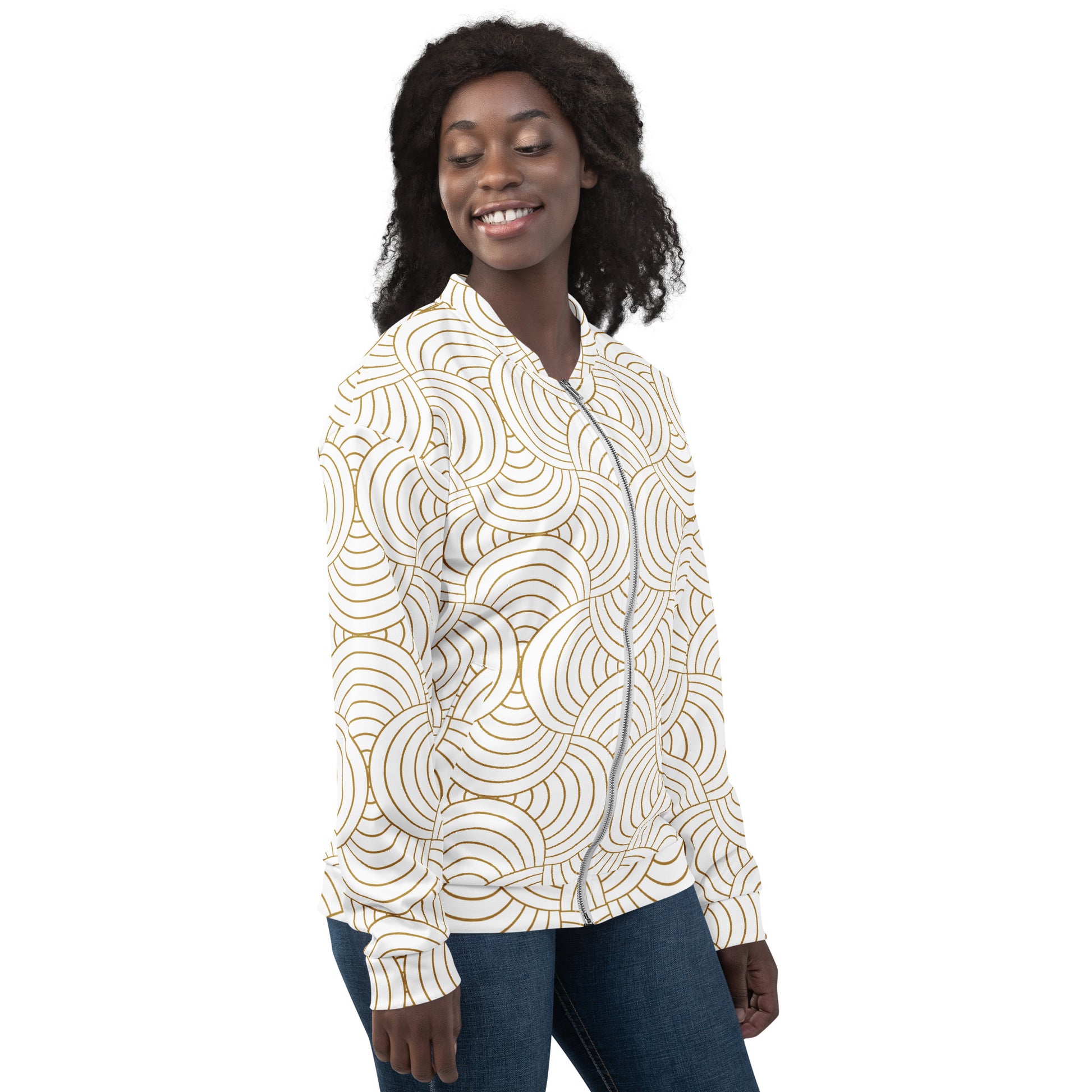 Veste bombardier pour femme - Blanc et Or – Zippée, légère et confortable – Graphique Minimaliste
