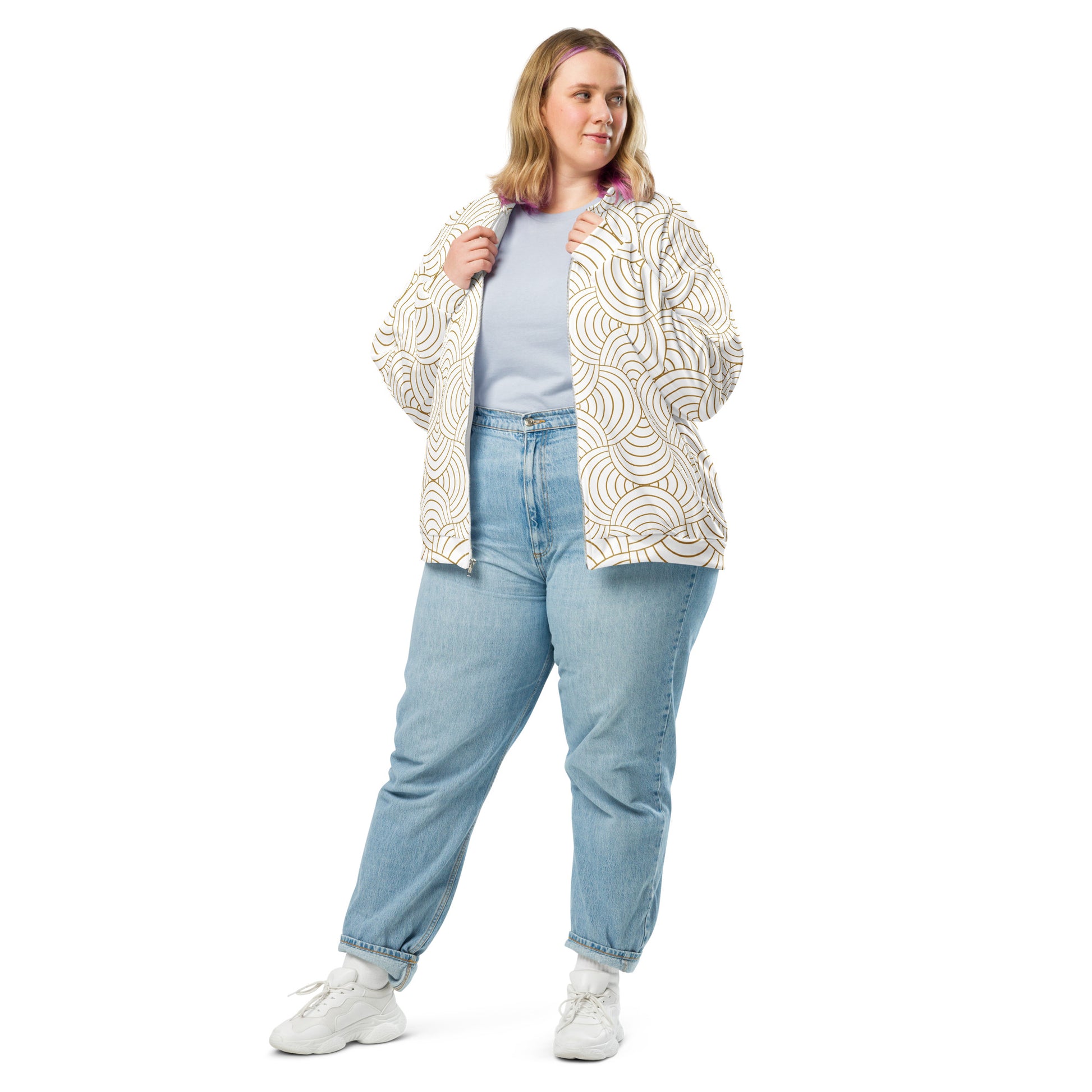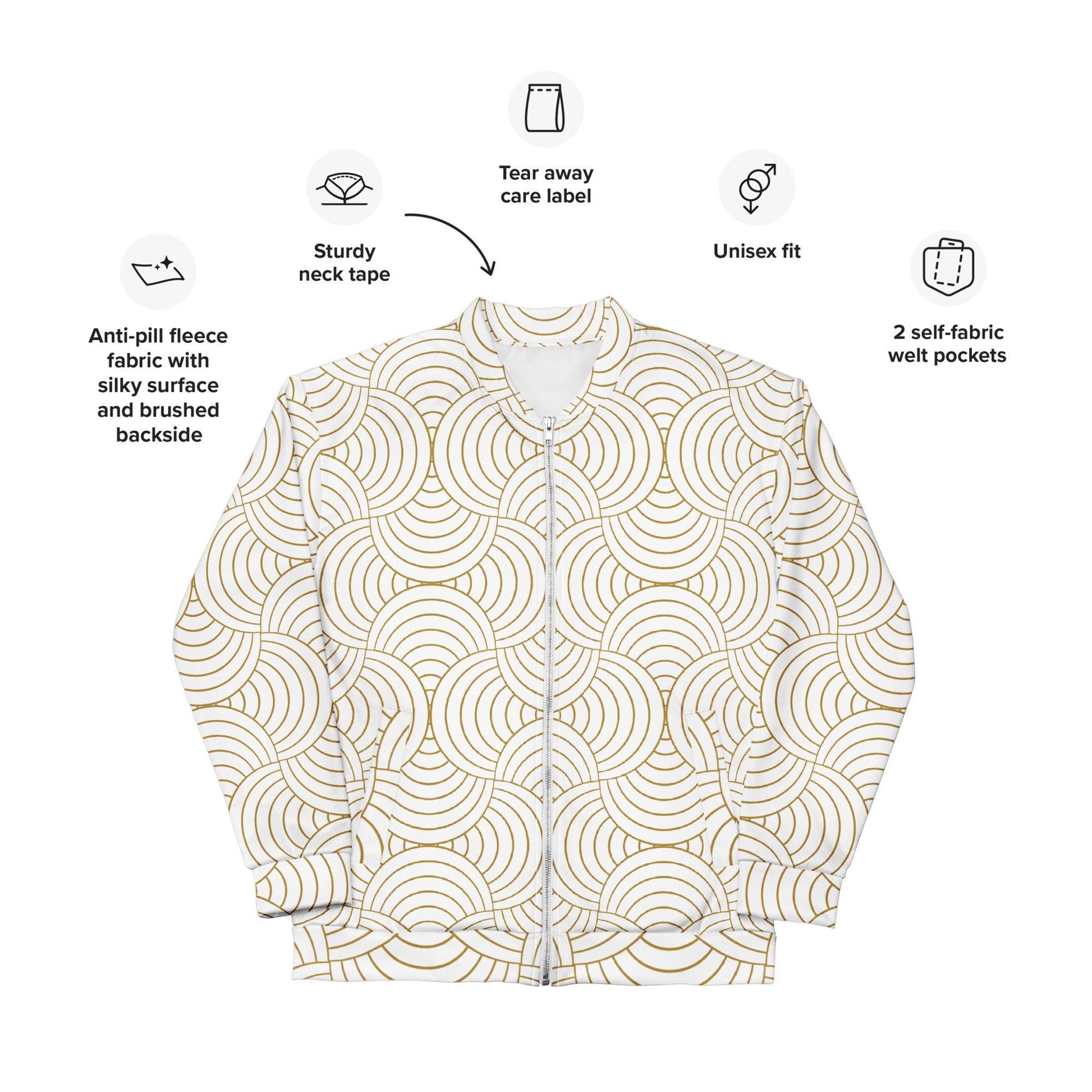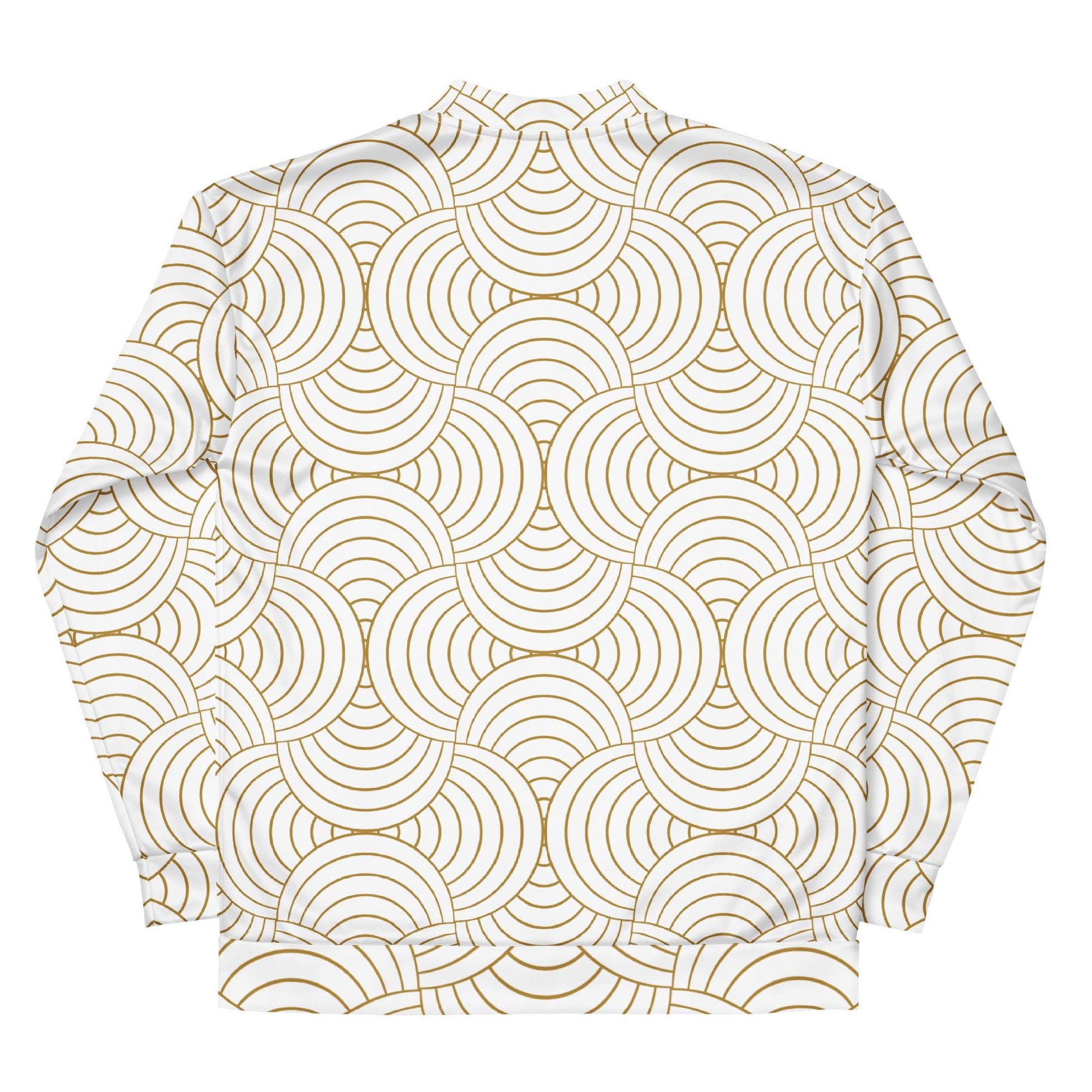 Veste bombardier pour femme - Blanc et Or – Zippée, légère et confortable – Graphique Minimaliste
